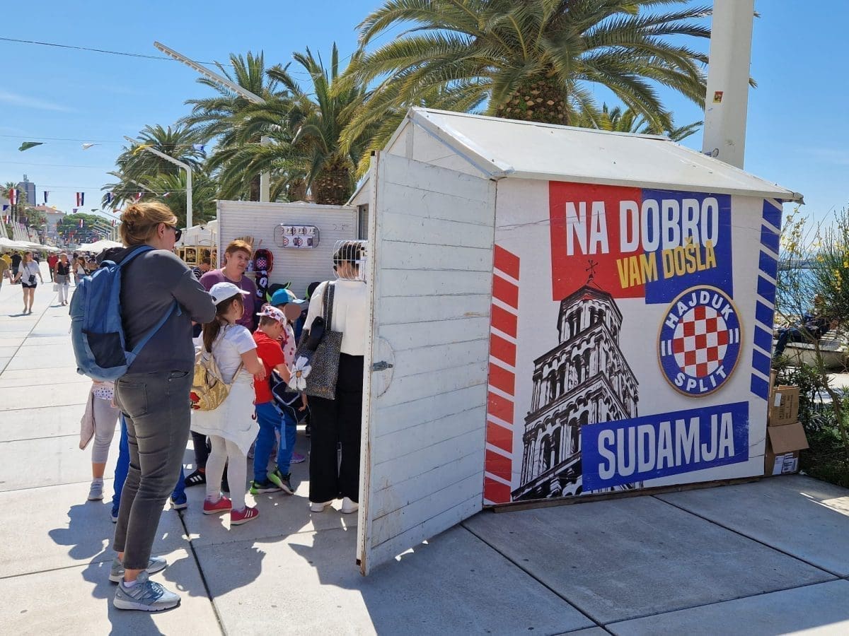 I kada prođete mnoštvo raznoraznih štandova, na kraju vas čeka 'bila' kućica. Oko nje se skupilo mnoštvo dječice, zveckaju euri, kupuju se hajdučki suveniri.