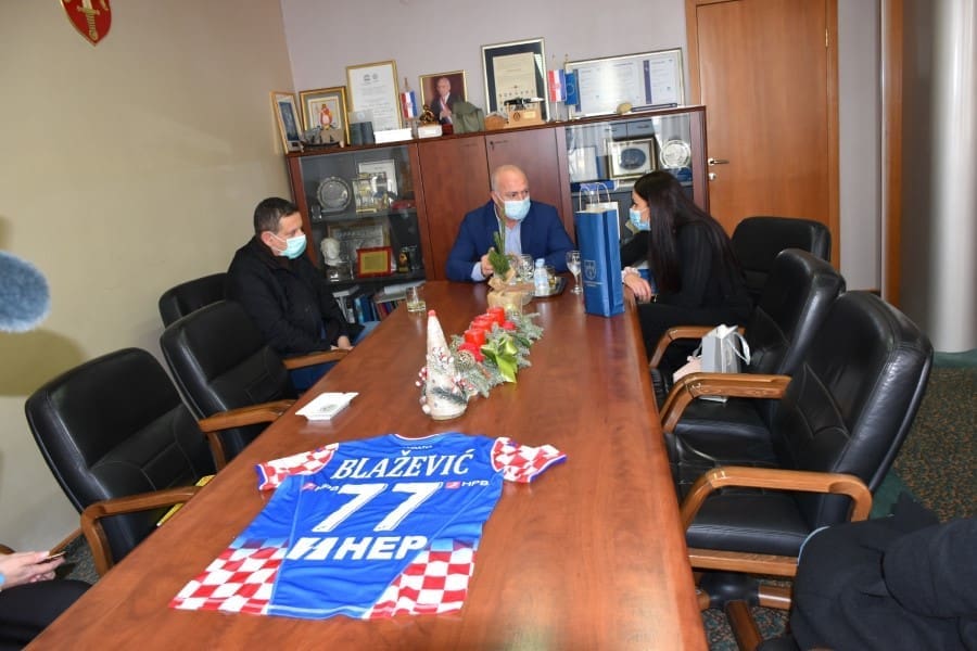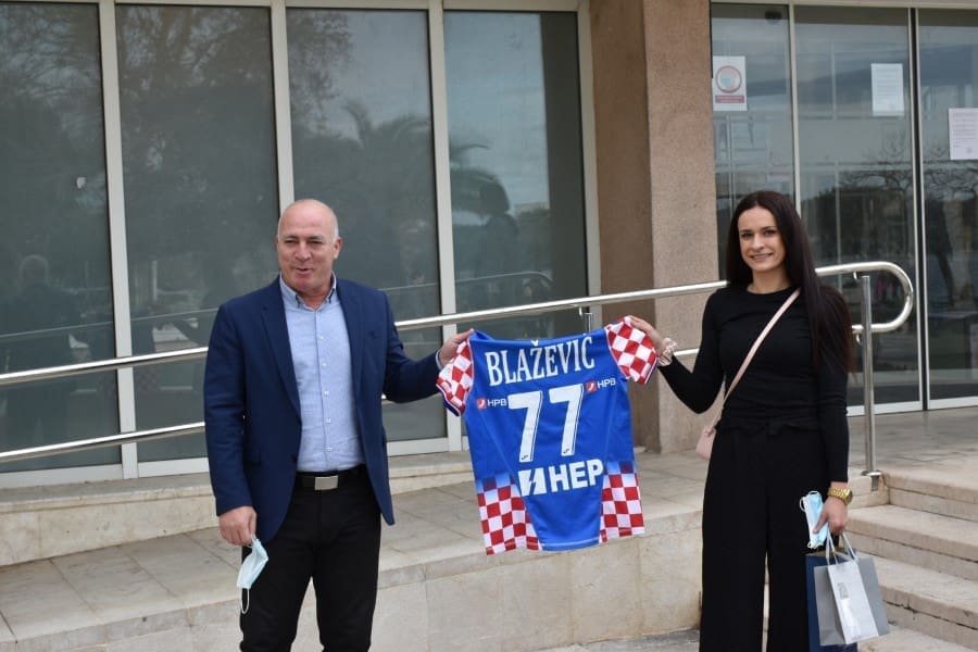 Valentina Blažević, mlada Kninjanka, jedna od najboljih hrvatskih rukometašica, zahvalila je županu na čestitkama i dobrim željama i poklonila mu svoj dres, s brojem 77.