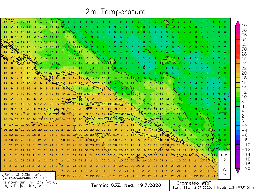 Pred nama su hladna noć i hladno jutro, možda i najhladnije ovog srpnja. Minimalne temperature zraka ponegdje u Zagori mogu biti ispod 10°C, a još hladnije bit će u susjednoj BiH gdje će minimalne temperature ponegdje biti oko 5°C. Ipak, danju će u nedjelju biti toplo i vrlo toplo s najvišim dnevnim temperaturama zraka većinom od 24 do 29°C.