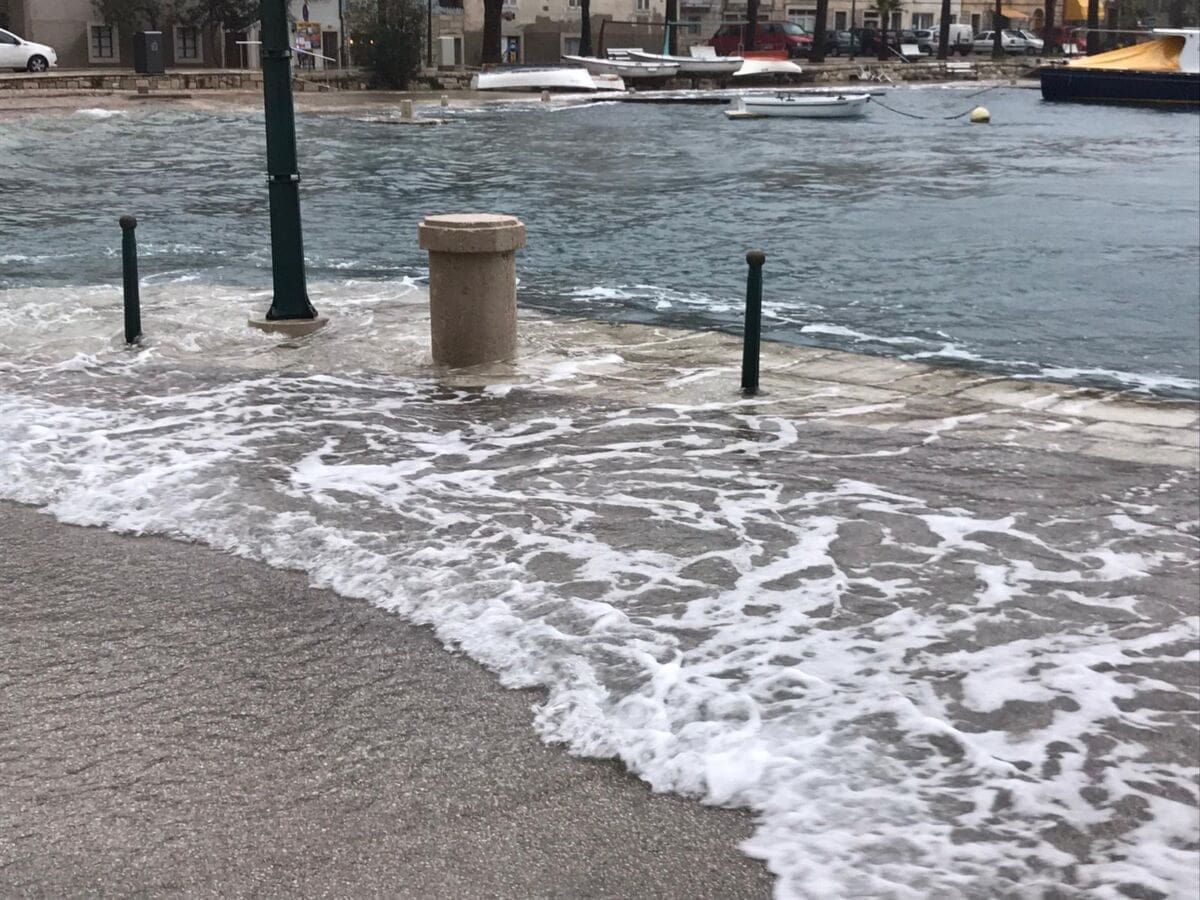 Uz snažne vjetrove i visoke valove, obalno područje pogodila je jedna od najviših plima posljednjih desetak godina. Prema podacima Instituta za oceanografiju i ribarstvo, mareograf je zabilježio visinu mora 162 cm, što je najviša razina mora posljednjih nekoliko godina.