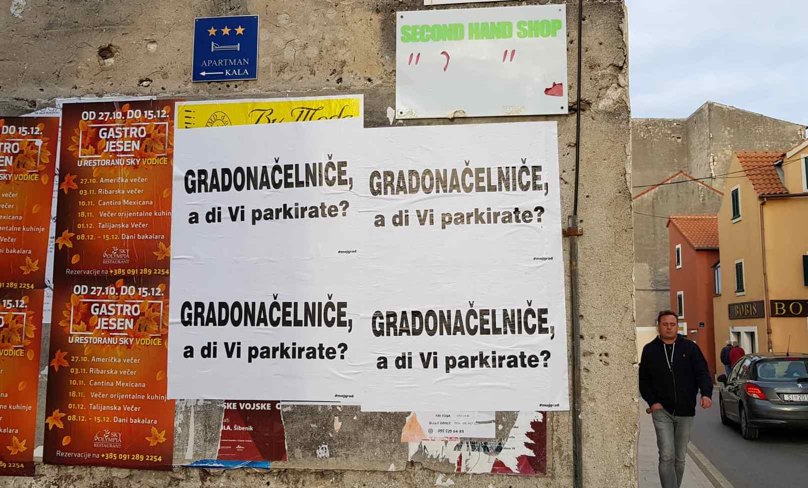 Gradonačelniče, a di vi parkirate?, pitanje je koje je 'crno na bijelo' osvanulo danas na plakatima na nekoliko lokacija u gradu, a potpisano je jednostavnim potpisom #mojgrad, koji Šibenčanima znači malo ili ništa.