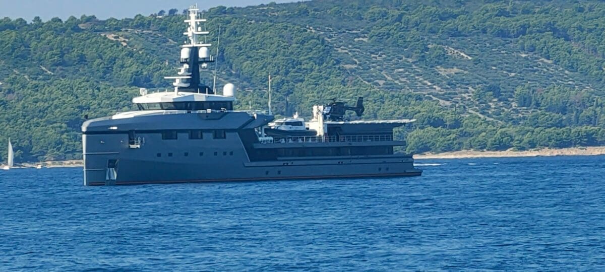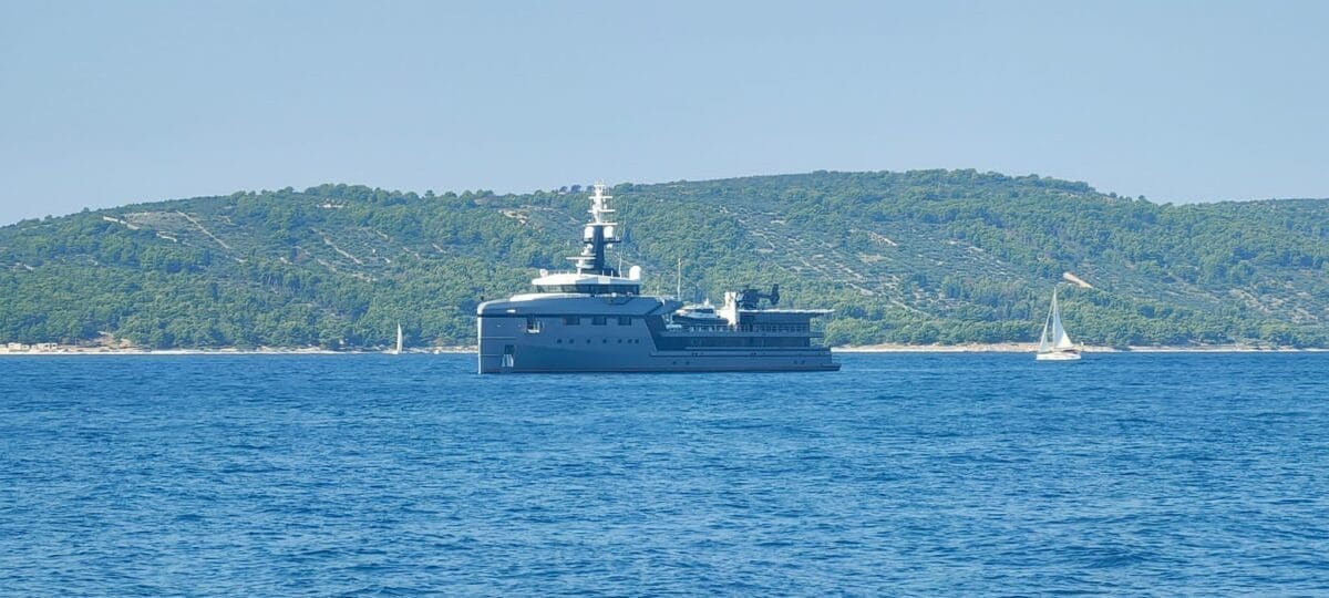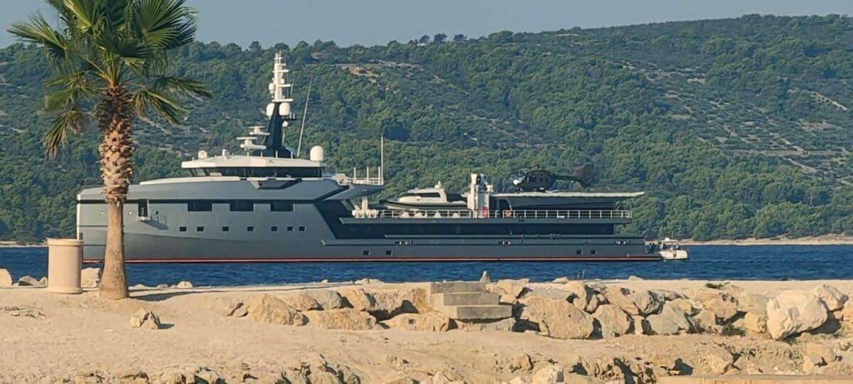 Pomoćno plovilo superjahte Koru, koja pripada milijarderu i vlasniku Amazona Jeffu Bezosu, viđeno je u nedjelju oko 10 sati ujutro na Kašjunima.