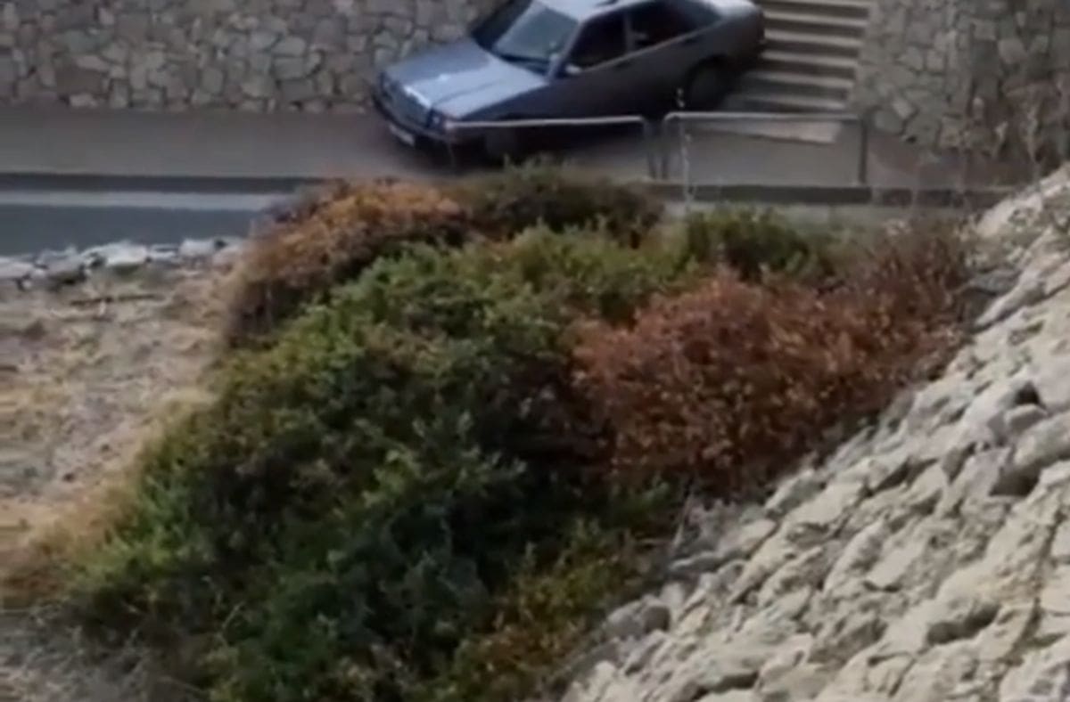 Objavljena je kratka snimka na kojoj se vidi automobil koji ide niz stepenice. Malo naprijed, malo natrag, zatim udara u zaštitnu ogradu.