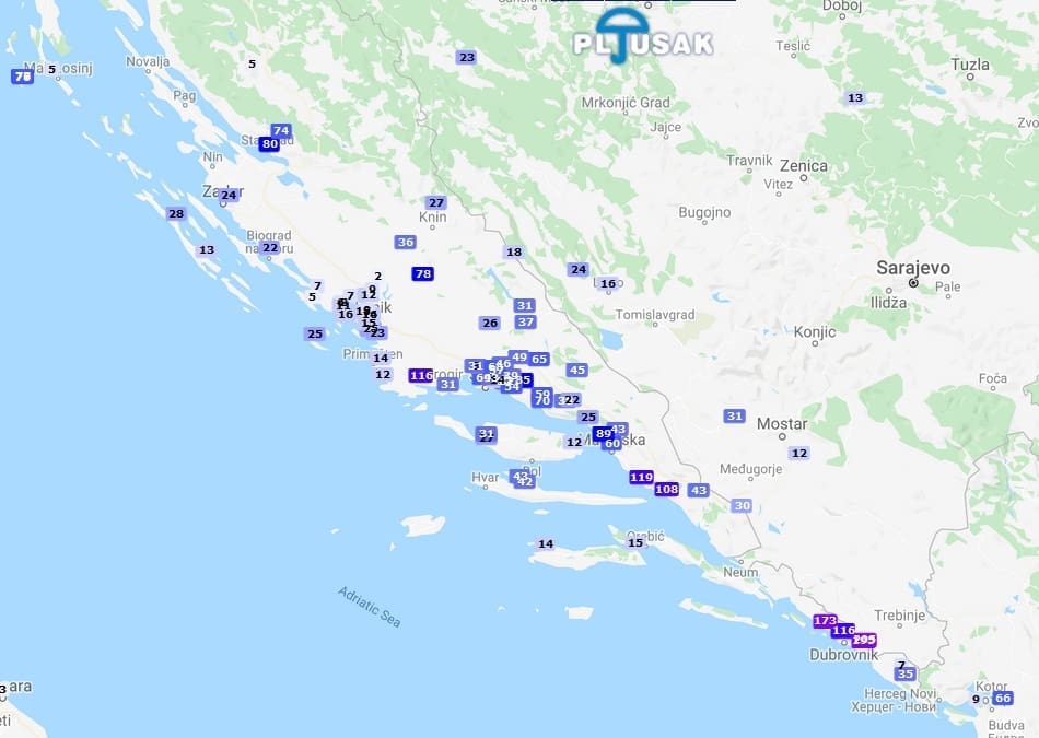 Kada su u pitanju oborine od početka mjeseca, zasad je najmanje oborina prosječno palo u sjevernoj, a najviše u južnoj Dalmaciji. Primjerice, Zadar je prvih sedam dana listopada primio 24 litre po kvadrantom metru, a Dubrovnik i preko 200. Od lokacija koje su već premašile 100 litara izdvajamo Živogošće (119), Marina - Poljica (116) i Zaostrog (108).