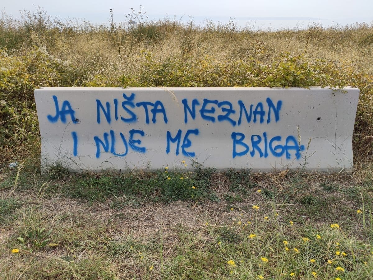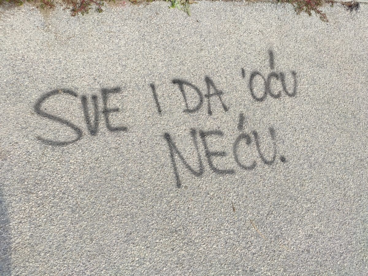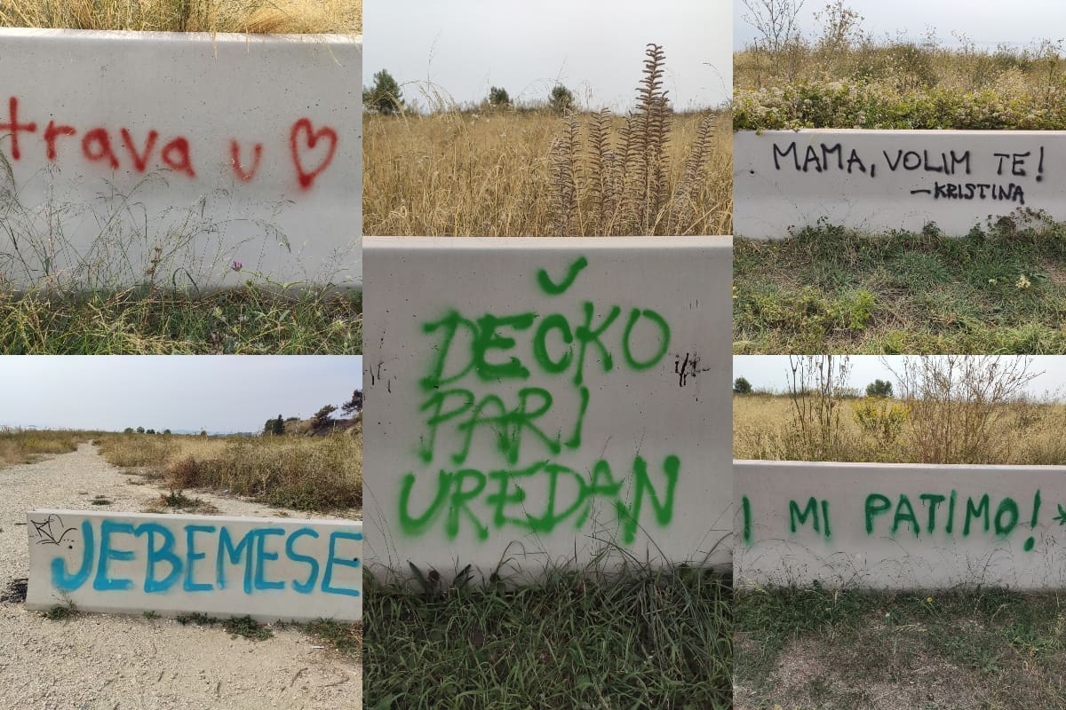 Podijeli Facebook Twitter Telegram WhatsApp E-mail adresa Duilovo vrvi grafitima raznih poruka. Ima tamo svega, od onih ljubavnih, poruka mržnje i tako dalje. Fotograf Joško Jaković je napravio veliku fotogaleriju. Tekst se nastavlja nakon oglasa Uživajte: GALERIJAKliknite za pregled Moja reakcija na članak je... Ljubav 3 Haha 7 Nice 0 What? 1 Laž 1 Sad 2 Mad 5 Facebook Twitter Whatsapp Telegram