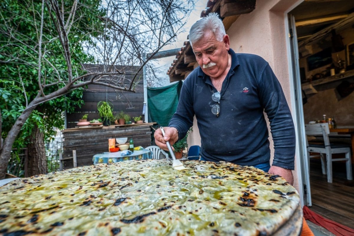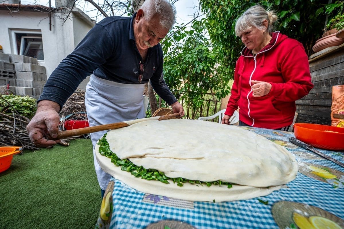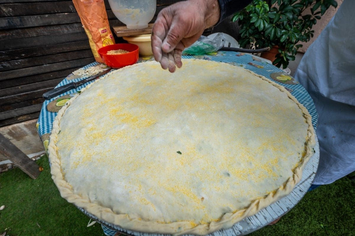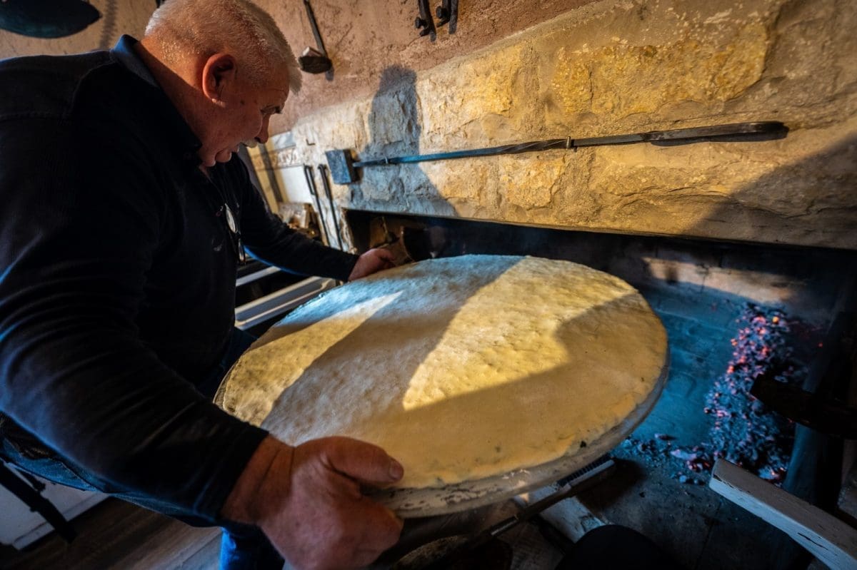 "Soparnik pečem 20-ak minuta jer je on sadržajem bogatiji nego uobičajeni. Jako je bitno da se vatra na kominu dobro razgori, potrebno je minimalno sat vremena. No puno toga igra ulogu; kakva je podloga na kominu, kakva su drva, je li komin već zagrijan, koji je dio godine jer je različito ljeti i zimi. Onaj tko peče, poznaje svoj komin.
