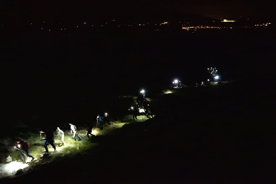 Goste je dočekao domaćin, predsjednik triljskih planinara već oko 18 sati, a druženje uz logorsku vatru potrajalo je do 21 sat kada su nakon pozdravnog govora i upoznavanja sa stazom 63 planinara krenula preko vrha Kruge, potom ispod grebena do samog vrha gdje su stigli u 23:45 sati, što je oko 2:45 sati hoda.