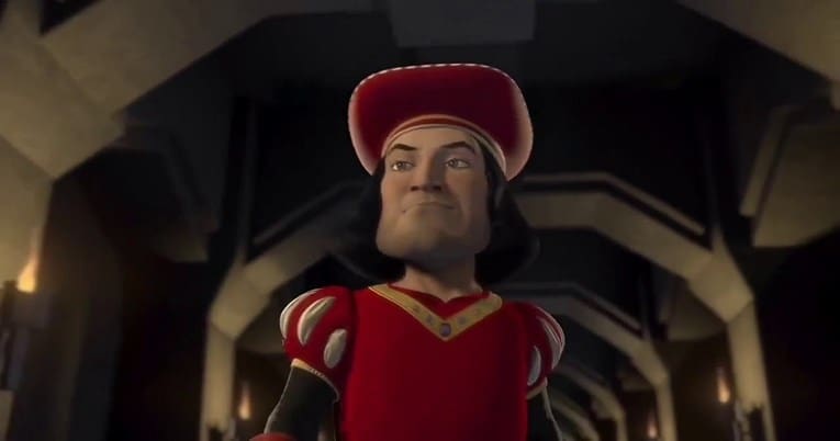 "Ah, savršeno", prokomentirao je Farquaad kada je vidio Fionin lik te podigao čašu u zrak prije nego što je pogledao prema svome uzbuđenome međunožju ispod pokrivača.
