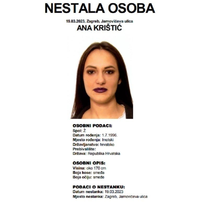 Kako smo ranije pisali, u Zagrebu je prije dva dana nestala Ana Krištić.