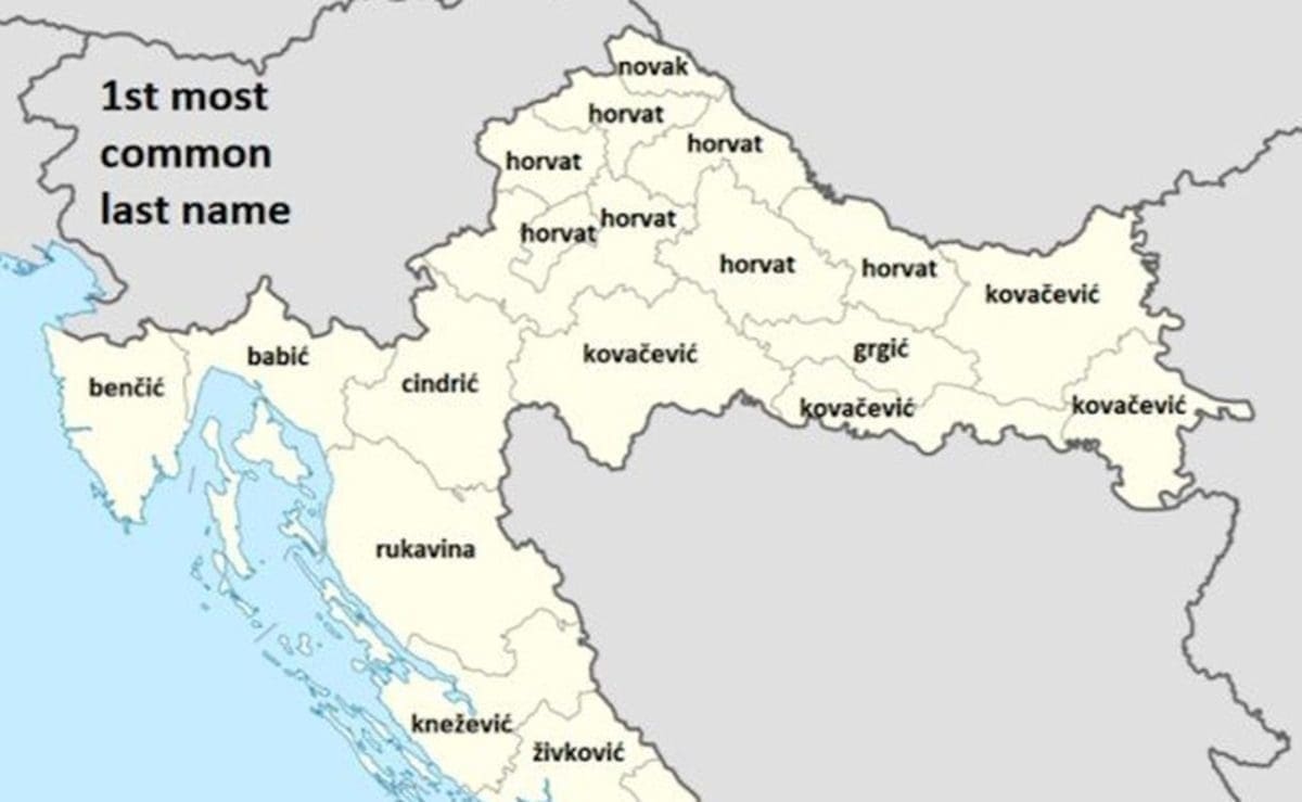 Netko se potrudio pa su na internetu osvanule mape s 10 najčešćih hrvatskih prezimena po županijama.