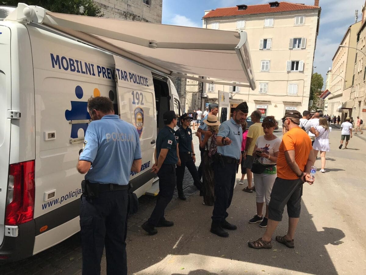 Francuski, poljski i ruski policajci su jutros zatečeni ispred Galerije umjetnina, a njihov zadatak je davati informacije turistima koji na Jadran stižu iz njihovih zemalja.