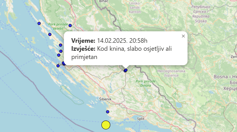 - Kod Knina, slabo osjetljiv, ali primjetan - piše jedan korisnik Potresi.hr.