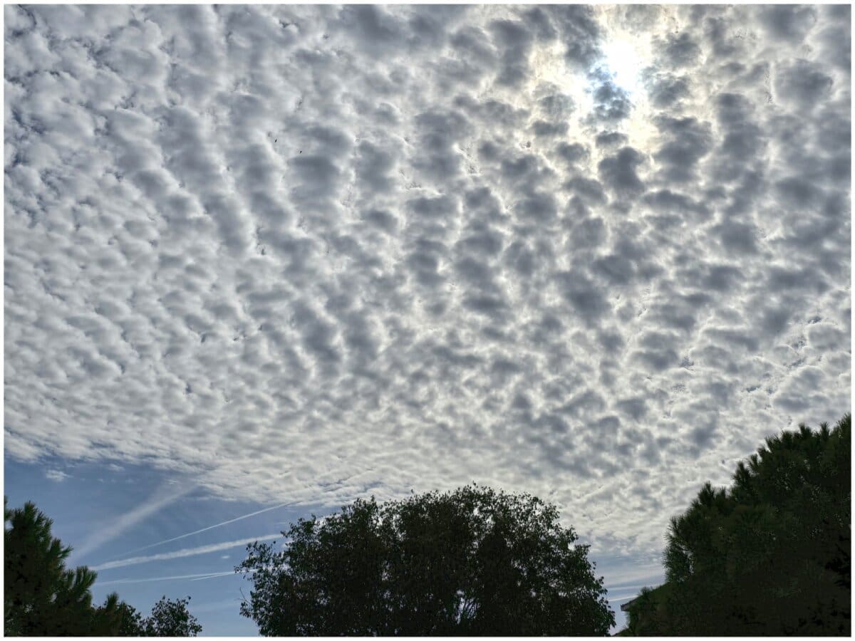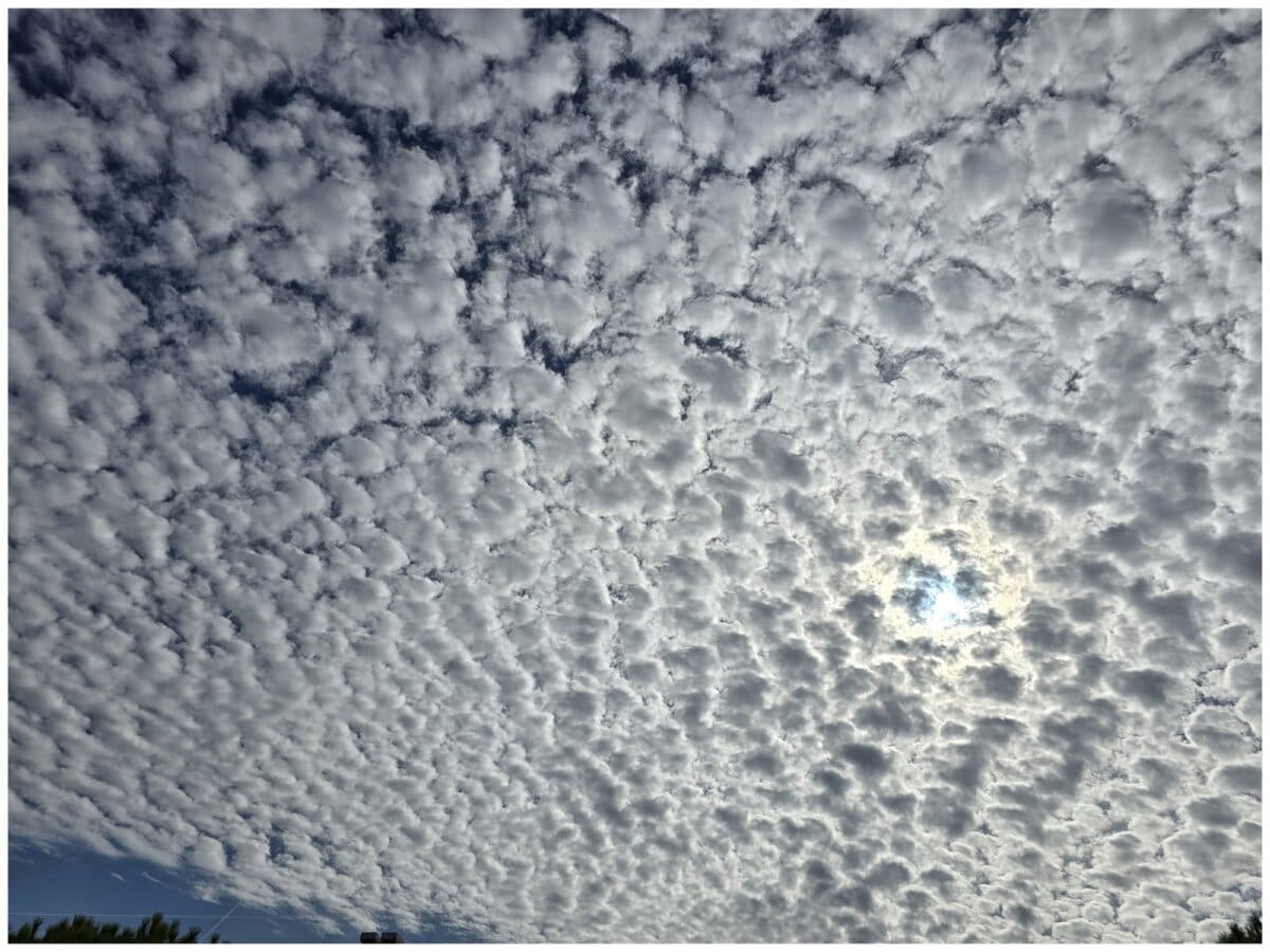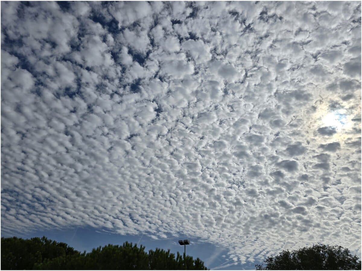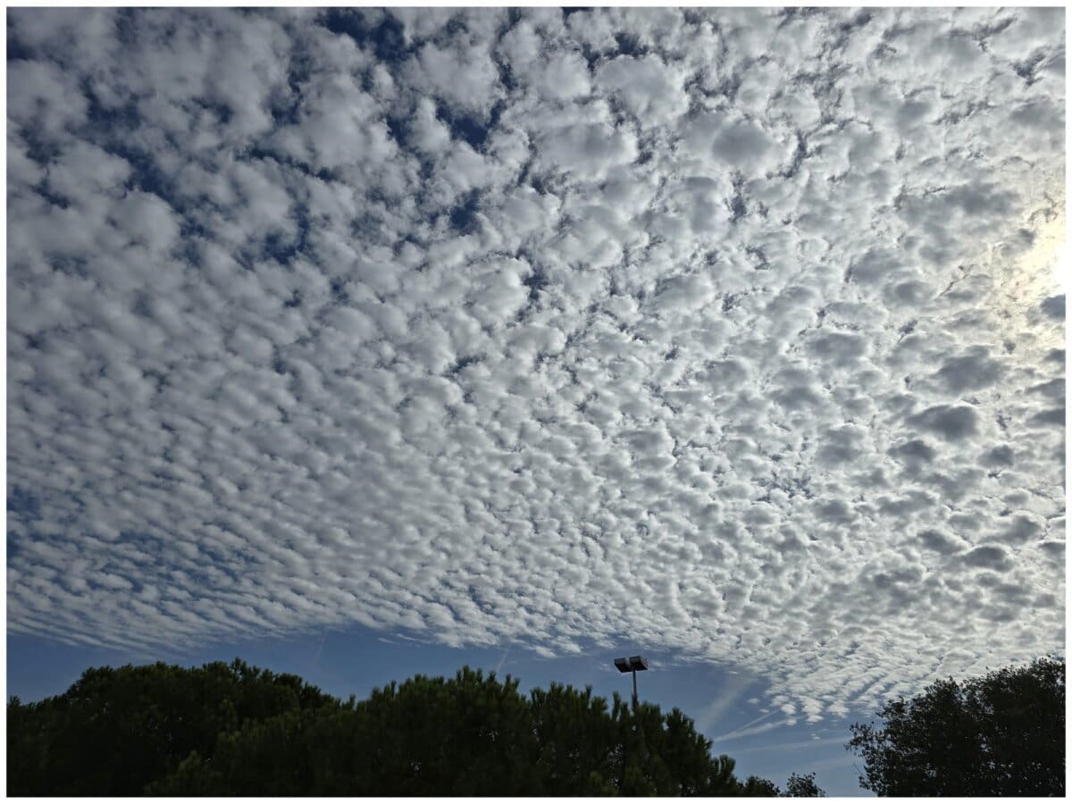 U poslijepodnevnim satima nebo nad Dalmacijom "okupirali" su altokumulusi, u narodu poznatiji kao "nebeske ovčice". Radi se o oblacima koji se nalaze između 5 i 8 kilometara visine te u ovom slučaju ukazuju da je po visini počelo pritjecanje toplijeg zraka s prednje strane ciklone.