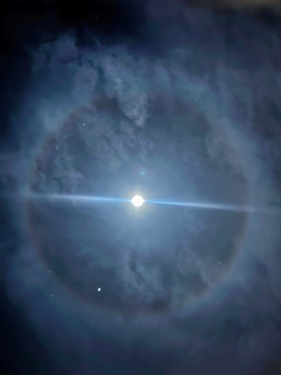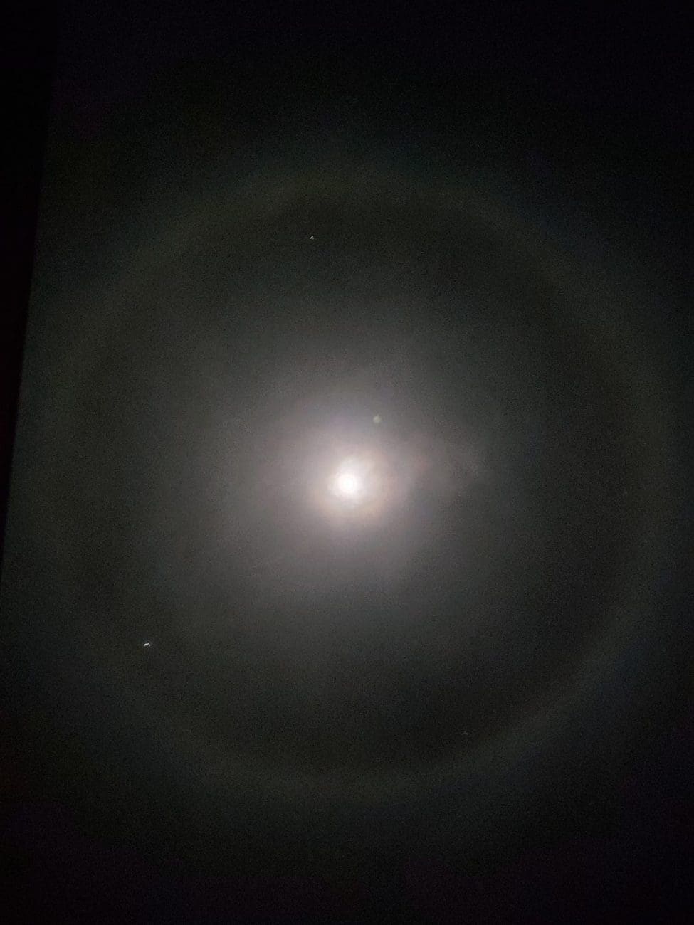 Tako su svi koji su večeras gledali prema Mjesecu mogli vidjeti kružnicu oko Mjeseca, odnosno halo oko Mjeseca.