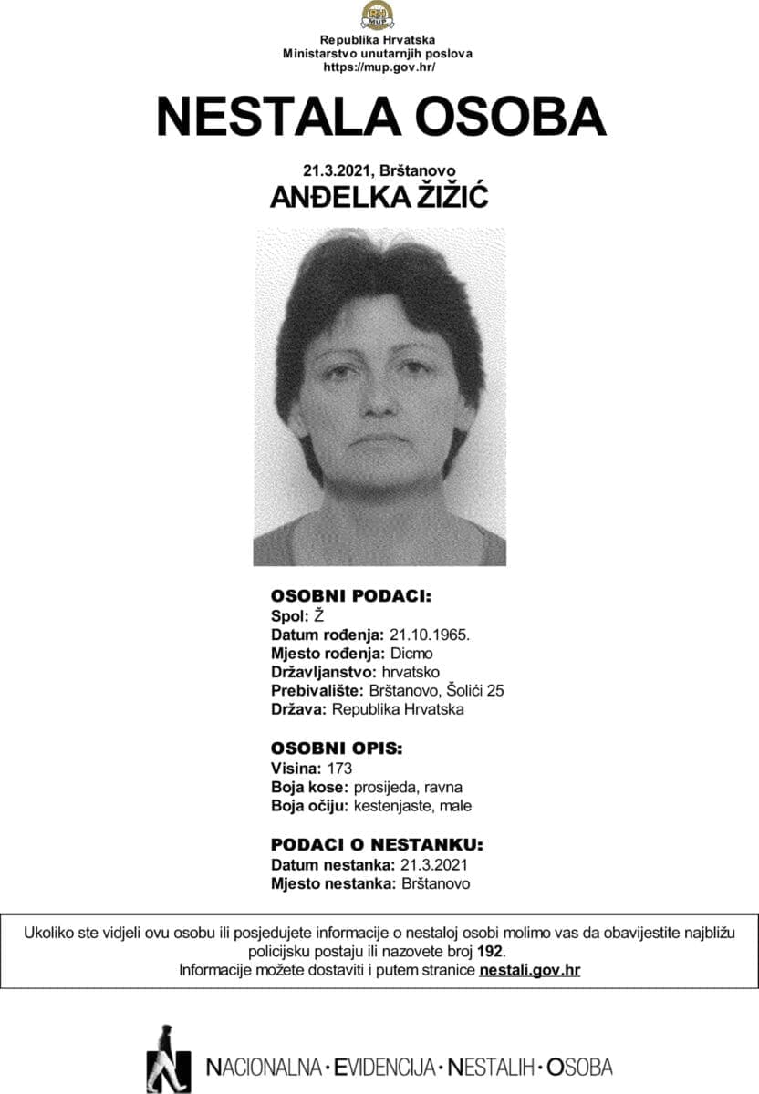 Sinoć u 22:00 u HGSS Stanicu Split je stigla dojava o nestanku pedesetšestogodišnje ženske osobe na području sela Brštanovo u općini Klis.