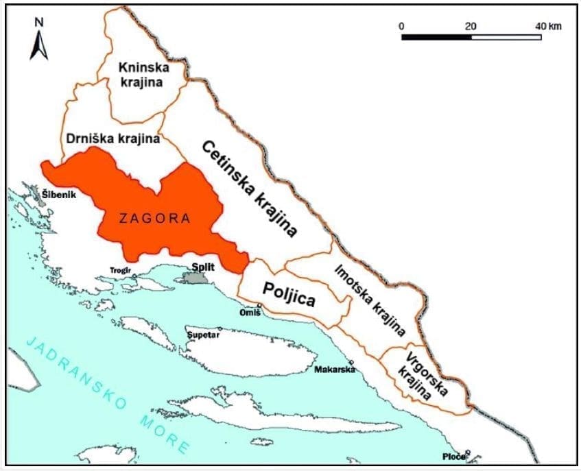 Splićani su recimo to pojednostavnili pa je njima sve što je iza brda – Zagora. No, nije to baš tako. Zagora je povijesno-zemljopisni kraj koji se nalazi na području Splitsko-dalmatinske i Šibensko-kninske županije, omeđen padinama Trtra, Velikog Jelinka, Kozjaka, Mosora, područjem Poljica, rijekom Cetinom i Cetinskom krajinom, Svilajom i Mosećem, Petrovim poljem i kanjonom Čikole.
