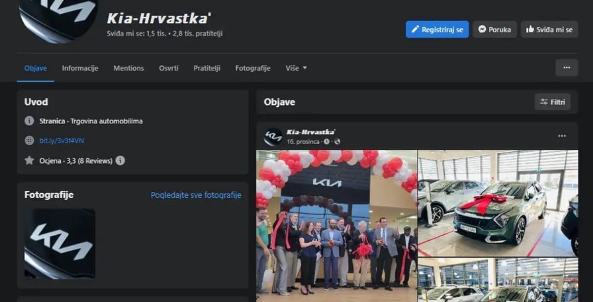 Hrvati su masovno nasjeli na lažnu Facebook stranicu koja se zove "Kia Hrvastka", a koja tvrdi da dijele 70 novih automobila, ako ispod objave u komentarima napišete ''Sretan Božić''.