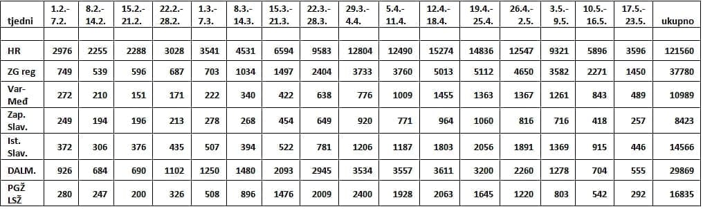 Skenirana tablica ispod preuzeta je iz Izvješća Hrvatskog zavoda za javno zdravstvo