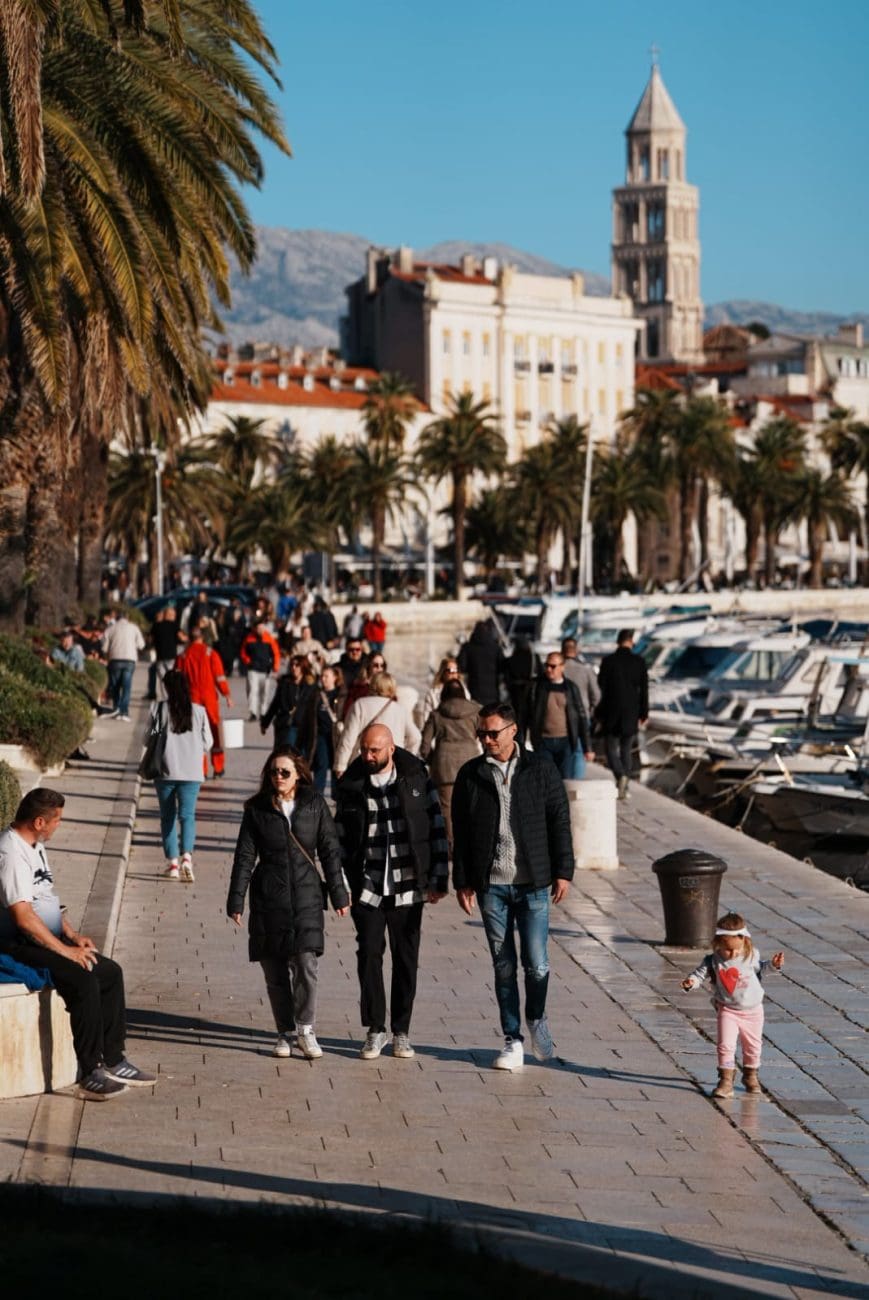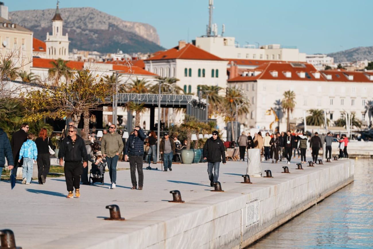 Iako je kalendarski zima, temperature i vedro nebo podsjetili su na proljeće, pa je središte grada bilo ispunjeno šetačima, obiteljima i turistima koji su iskoristili povoljne vremenske prilike. Split tako u mirnom ritmu odbrojava posljednje dane stare godine, u očekivanju novogodišnje proslave.