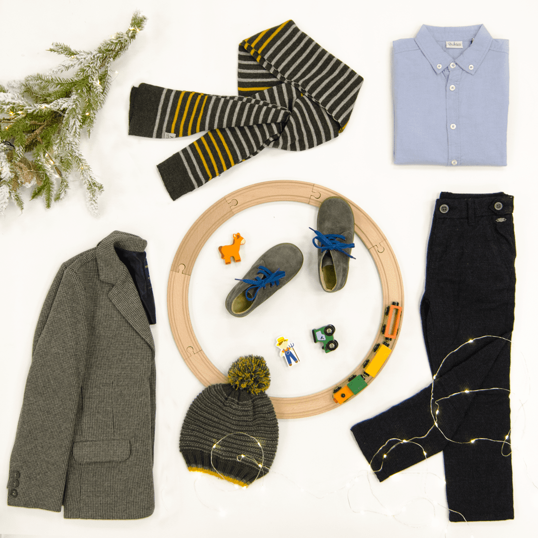 Sako Mayoral, Sara, cijena na upit; Šal OVS, 69,95 kn; Hlače OVS, 179,95 kn; Košulja Blu Kids, 159 kn; Kapa OVS 69,95 kn; Cipele Naturino, 510 kn; Drveni vlakić Toy&Joy, 149,99 kn