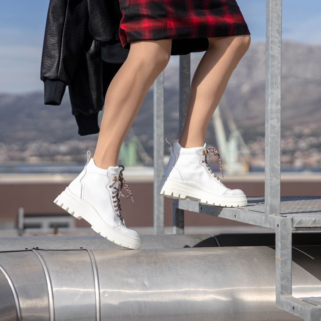 Do listopada već se nismo mogli obraniti od desetaka sličnih modela koje su gotovo paralelno izbacile kuće visoke mode, poput Prade i Bottege Venete i high street brandovi poput Manga. Inspiracija su im vječne Martensice i druge military čizme, ali potplati su u novim interpretacijama još deblji od originala, nerijetko od prozirne gume, ponekad u kontrastnom tonu, a osim neizbježne crne čizme, u fokusu su i potpuno bijeli ili bež modeli, smeđe čizme, a sve to uz puno dodataka, remenčića, aplikacija u obliku džepa… važno je samo da potplat bude barem dva centimetra debljine! Osim na vezanje, ove su jeseni jednako traženi i chelsea modeli takvih čizama.