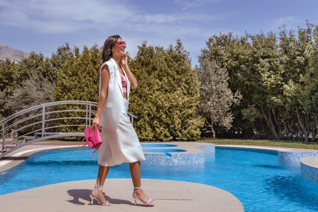 Bijeli ljetni outfit bit će dobro polazište za one koji od svečanijih prigoda kakve nas očekuju ovih tjedana traže neki pomak. Klasična suknja zamijenjena je tako nešto manje klasičnim širokim bermudama koje daju više slobode kretanja, uz jednaku dozu elegancije. Uz naglaske u ružičastoj i ležerni prsluk, ova kombinacija pravi je ljetni neo-klasik.