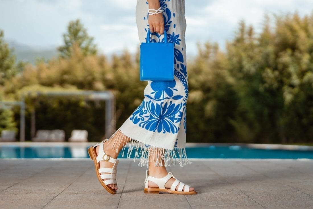 Plava i bijela – asocijacija je samo jedna. Poput bijelo oličenih fasada s plavim ‘škurama’, poput azurno plavog mora ili uzoraka na antičkoj grnčariji, ova kombinacija boja priziva bezbrižno ljetovanje na nekom grčkom otoku. Ležerne hlače, sandale i kupaći kojem je sjajno skrojeni prsluk dao notu ozbiljnosti top su kombinacija za zaigrani izlazak, pogotovo ako im dodate zanimljivu večernju torbicu u pariško plavoj.