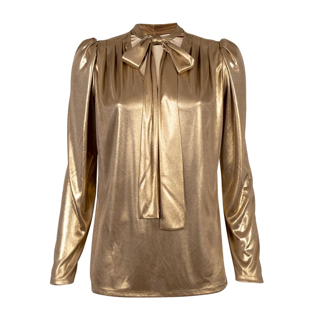 Skoro svi su brandovi u svoje kolekcije unijeli zlatne elemente, a najzanimljivije su među njima bluze i lagani džemperi oplemenjeni zlatnim nitima, kao i još uvijek aktualne metalik plisirane suknje. Jedan zlatni komad uz ostatak u nekim neutralnom tonu – od crne do bež – učinit će običnu kombinaciju itekako svečanom!