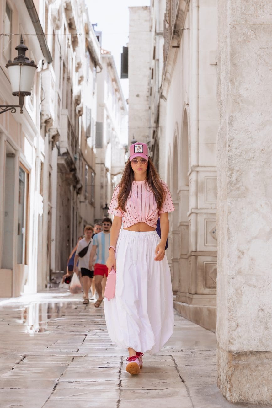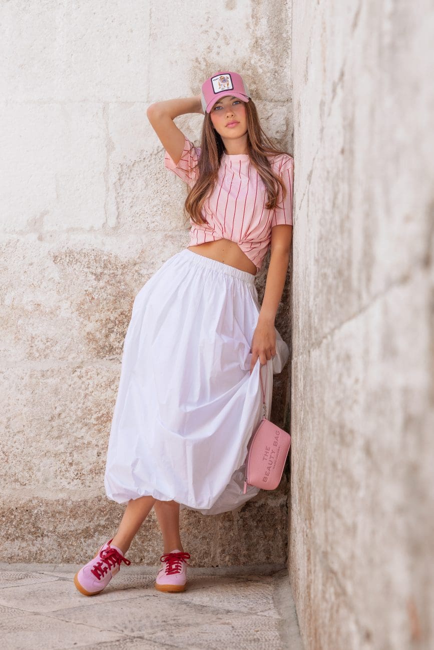 Oslobađajuće je nakon teške zime, koračati kroz sunčane mjesece u komadima koji ne sputavaju, kao što je ova maksi suknja balon kroja koju možete savršeno upariti sa sportskim komadima. Uz šiltericu i trendi tenisice, spremni ste za poslijepodnevne šetnje gradom uz omiljeni gelato.