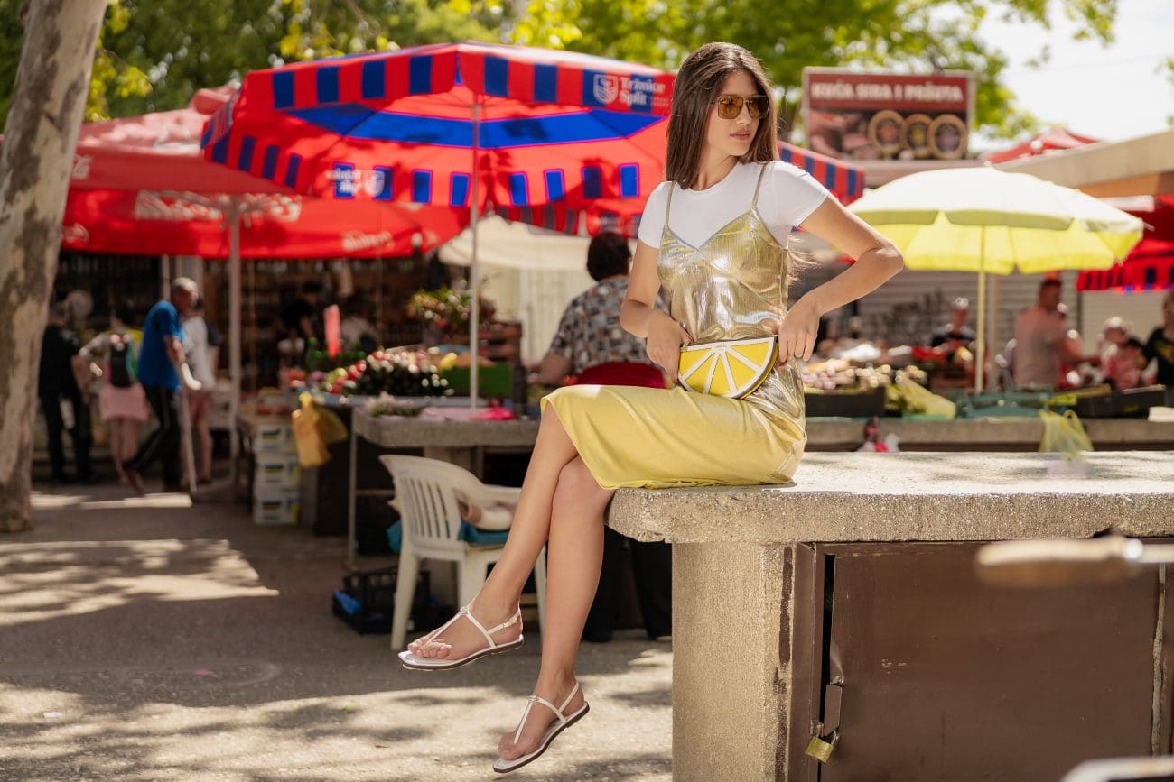 Sezona ljetnih festivala prava je prilika da zasjate! U haljini žarke boje silver efekta zasjat ćete kao kraljica večeri, a torbica oko struka i sandale ravnog potplata bit će vaši vjerni pratitelji na ljetnim festivalima jer vas neće sputavati u zabavi i plesu do zore.