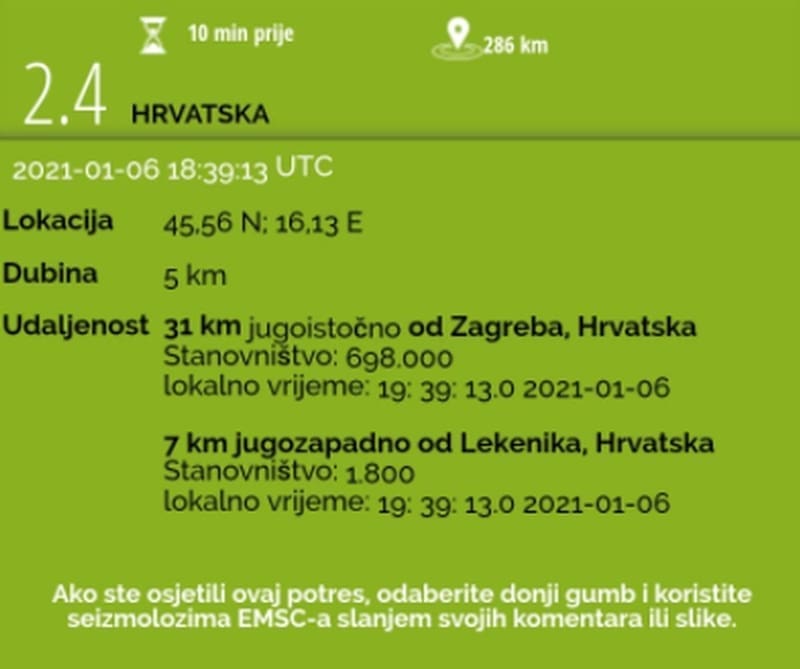 M2.4 #earthquake (#potres) strikes 22 km NW of #Sisak (#Croatia) 9 min ago. Effects reported by eyewitnesses: pic.twitter.com/EQV2L5MSos