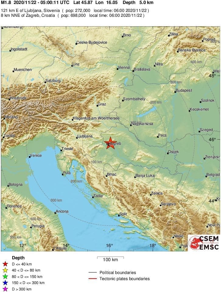 Slabi potres imalo je danas i zagrebačko područje. Potres magnitude 1.8 dogodio se u 6 sati ujutro, a epicentar mu je bio 8 kilometara sjever-sjeveroistočno od grada.
