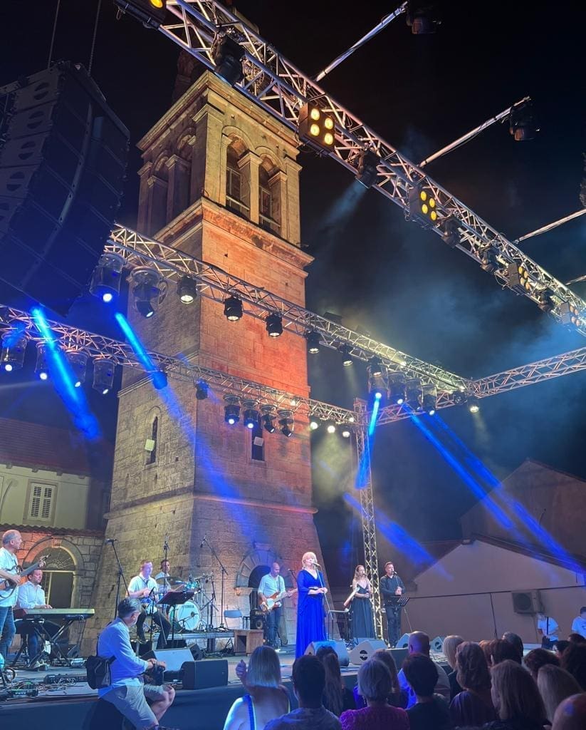 Još jedna večer, još jedan koncert. Diva Vele Luke, Jasna Zlokić. Kao i prethodne večeri, puna pijaca ispred crkve sv. Josipa.