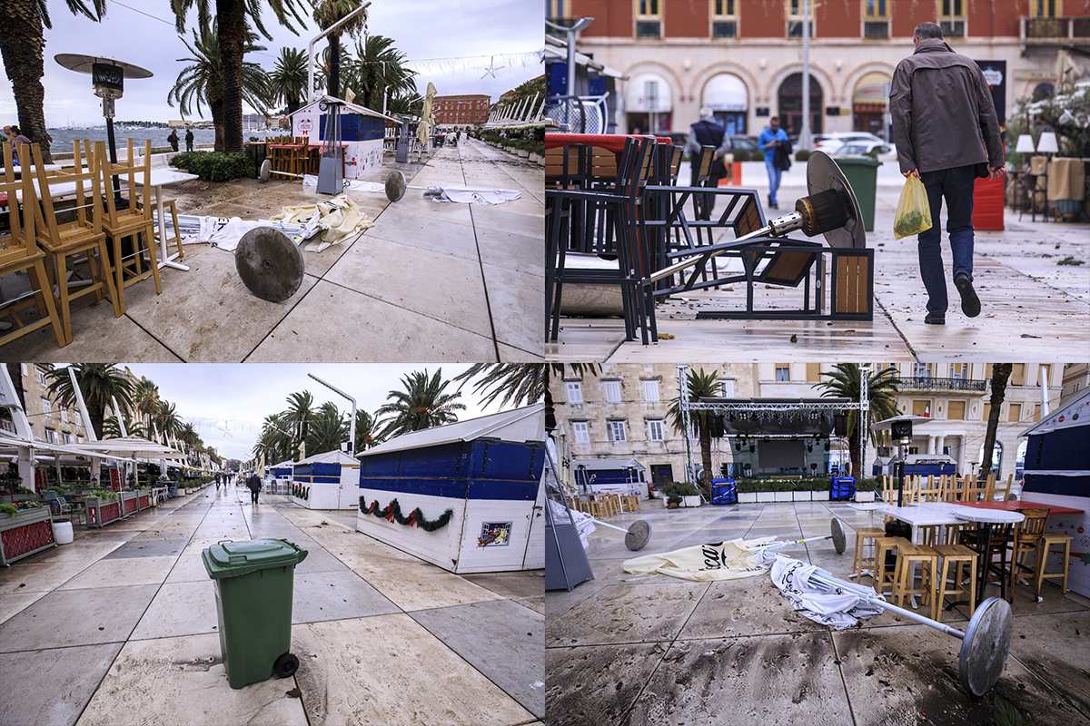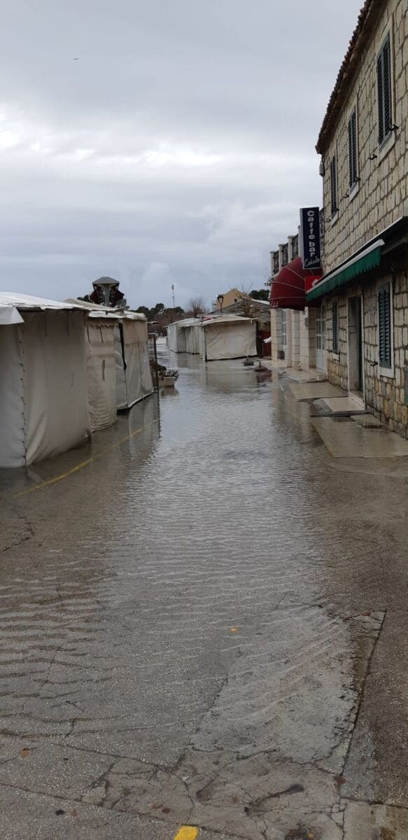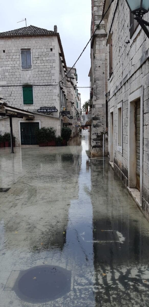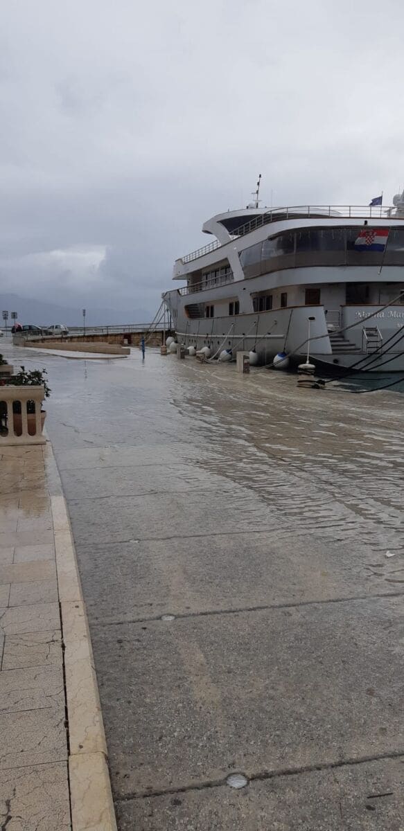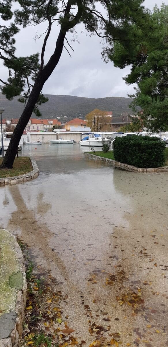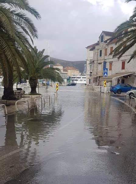 Prema informacijama Omišana, današnju situaciju da more i voda prodiru u objekte ne pamte ni najstariji. Slična je situacija z Trogiru i na Čiovu. S čiovske strane Trogira voda je ponegdje na kolniku visoka nekoliko desetaka centimetara. Zbog prelijevanja mora preko obale, zatvorena je cesta u Kaštel Sućurcu, uzduž Obale kralja Tomislava. Velika plima je i na šibenskom području. More je u Pirovcu prodrlo u nekoliko ugostiteljskih objekata.