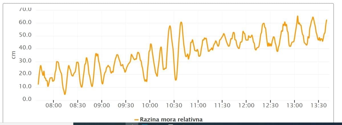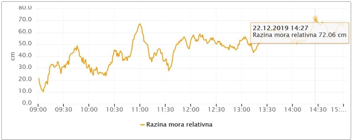 13. studenog ove godine na mareografskim postajama u Splitu i Pločama izmjerena ekstremno visoka razina mora. U Splitu je u četiri ujutro izmjerena razinu mora od 1.515 metara iznad mareografske nule, odnosno 91.1 centimetar iznad srednje razine mora. Radi se o najveća razina mora izmjerena od 1955. godine, od kada je ta postaja počela s kontinuiranim mjerenjima.
