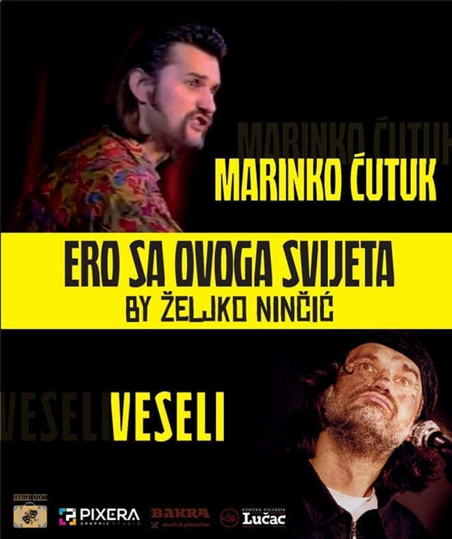Podsjetimo, Željko Ninčić, koautor prve i jedini autor kasnijih legendarnih 'Audicija', u svojoj najnovijoj komediji 'Ero s ovoga svijeta' utjelovljuje Marinka Ćutuka (Ero s ovoga svijeta) i Veselog (Primi me), dva legendarna lika iz Audicije.