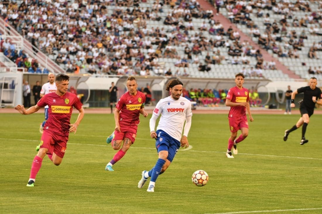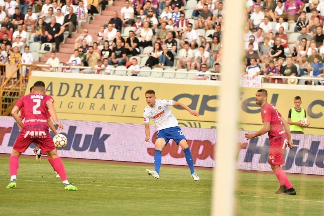 Livaja se našao u velikoj prilici već u 3. minuti, Grgić ga je idealno uposlio, Hajdukova je desetka malo zakasnila. Dvije minute kasnije gostujuća obrana dobro intervenira na opasan Fossatijev ubačaj. Mahmoudov pokušaj s 20 metara u 12. minuti završio je kao korner za goste.