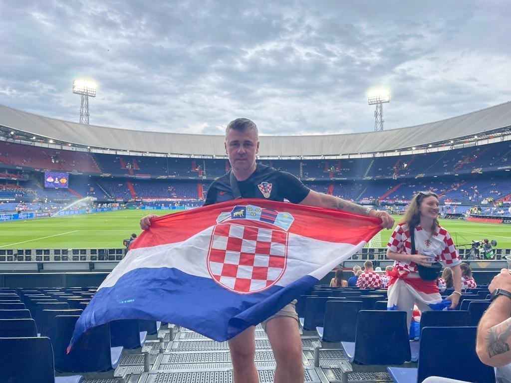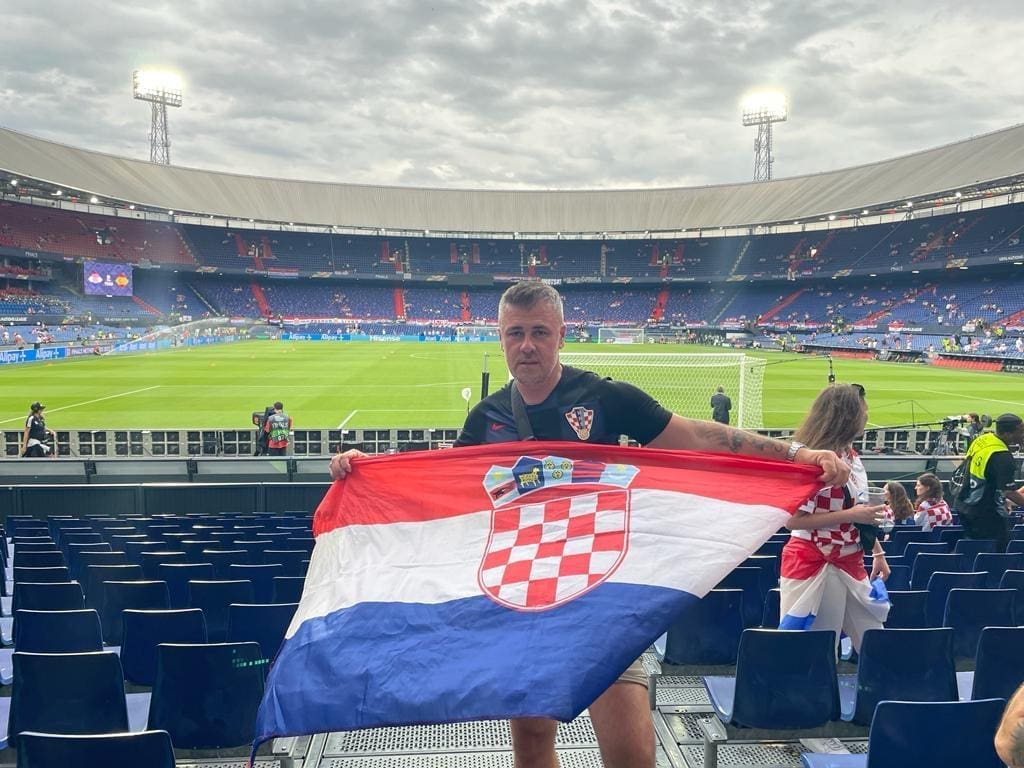 Popularni pjevač cijeli je dan proveo na čuvenom stadionu De Kuip i po navijačkim kornerima u društvu brata Ante i rođaka Dražena Čurića. Bez problema se slikao s mnogim našim iseljenicima iz Njemačke gdje je uvijek rado viđen gost na hrvatskim glazbenim večerima, a priložene fotografije otkrivaju samo mali dio užarene atmosfere danas iz Rotterdama.