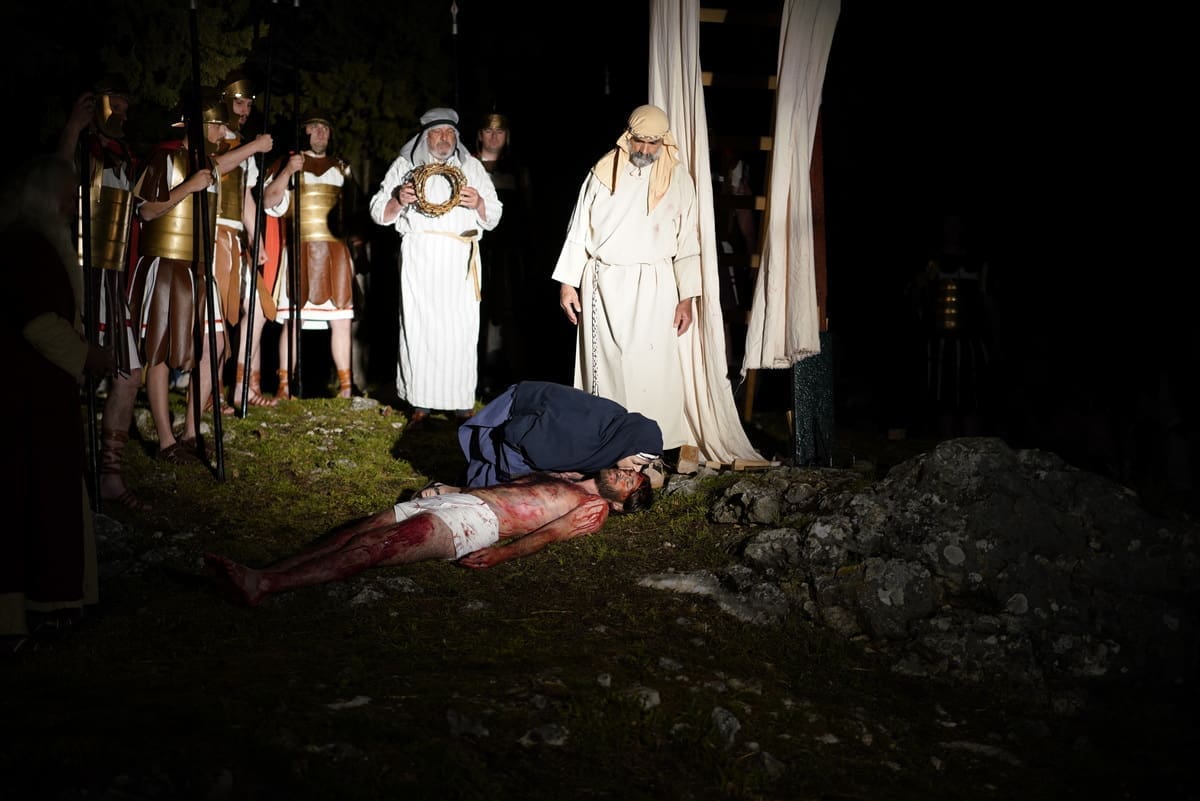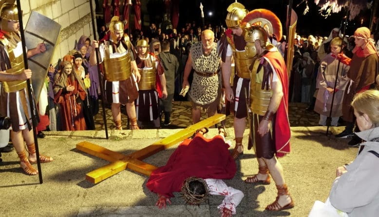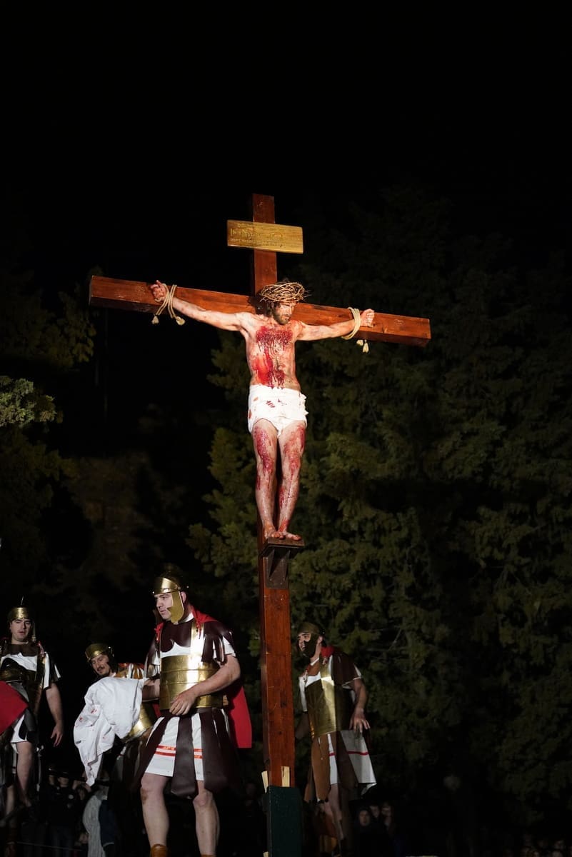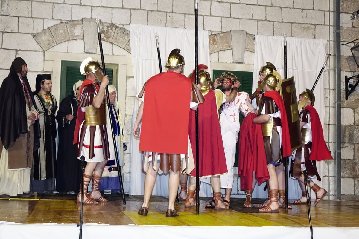 Posljednja večera, Getsemanski vrt, put Isusov do sudnice, Poncije Pilat, pa ponovno put pod teškim križem Isusa do starih imotskih skalina. Tamo susret s majkom Marijom, pa onda Veronikin rubac, Šimun Cirenac i konačno put prema imotskoj Golgoti, tom svetom mjestu ispod utvrde Topana. I tamo ono što je izmamilo uzdahe tisuća, što ovlaži mnoštvo očiju suzama. Razapinjanje Isusa. Stvarno je to bilo sinoć u Imotskom. Dvadeseti prikaz i prvi put cijeli Imotski, sa svim imotskim glumcima. A njih bijaše više od 400.