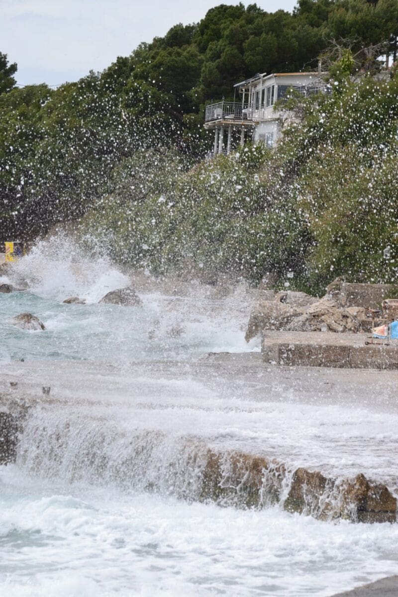 Dan na Jadranu obilježava jako jugo s olujnim udarima koje na splitskom području puše na udare do 83 km/h, a na Lastovu do 99 km/h. Snažno jugo diglo je valove uzduž cijele obale.