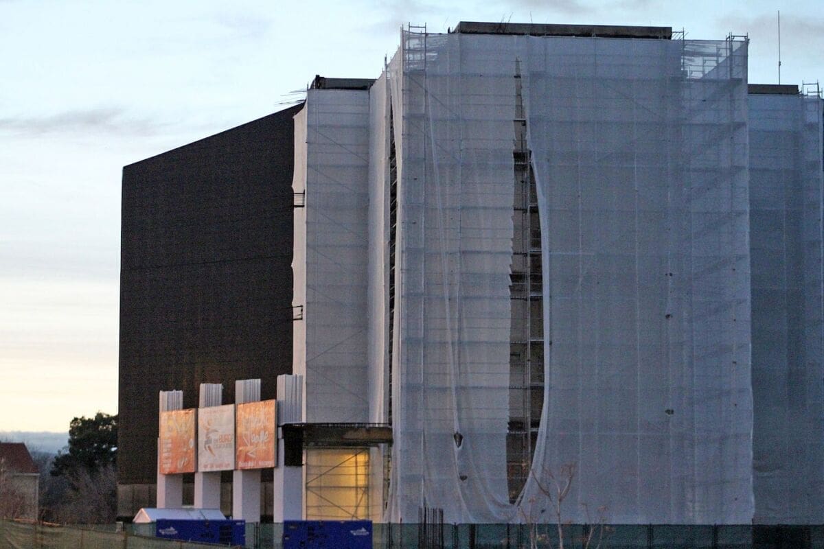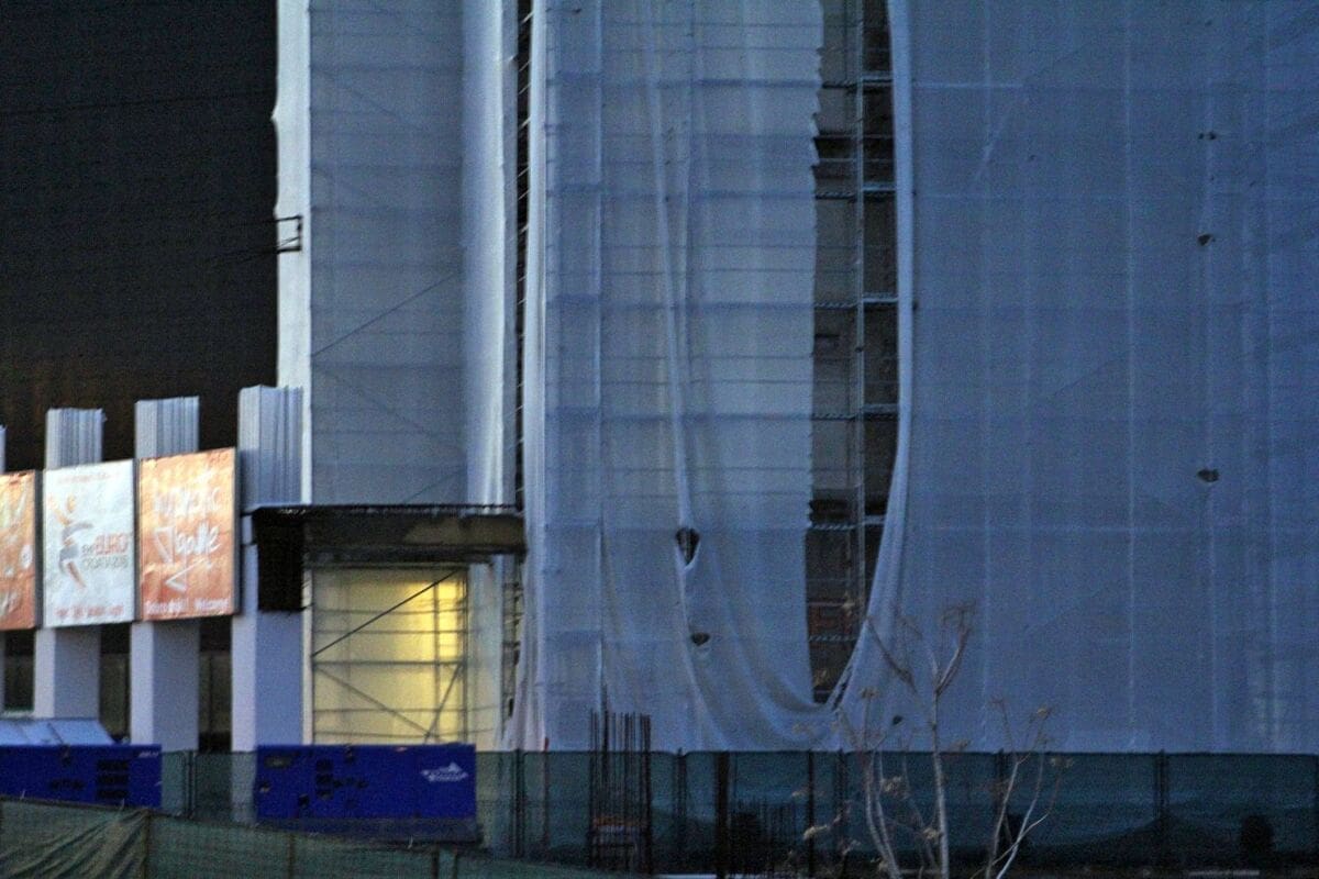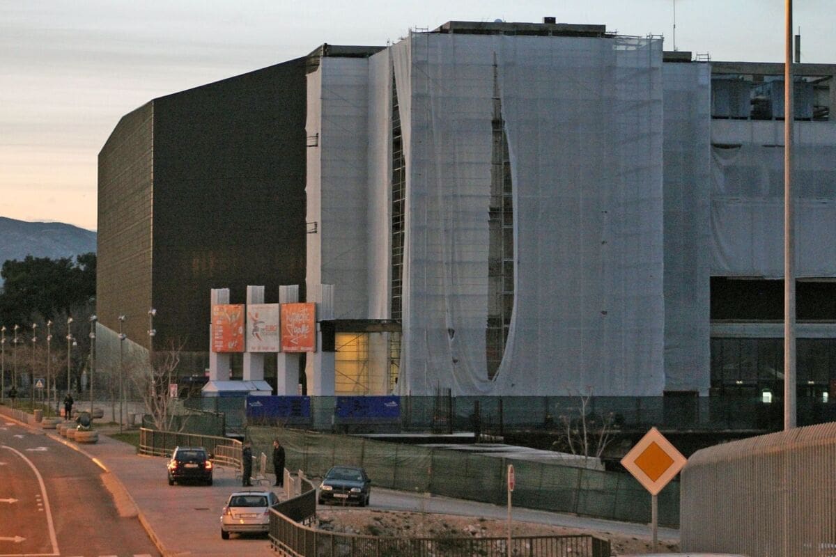 Nije to bio dobar vremenski scenarij za radnike koji već tjednima "šminkaju" nedovršeni dio pročelja Spaladium Arene. Naime, olujni udari vjetara prethodne noći otpuhali su privremeni pokrov istočnog pročelja Arene. Upravo je to bio jedan od uvjeta da Split dobije domaćinstvo, uz sve ostale na kojima se marljivo radilo zadnjih tjedana. Tako je dio pročelja Arene ogoljen upravo na dan kada su u grad pod Marjanom stigli Šveđani i Islanđani.