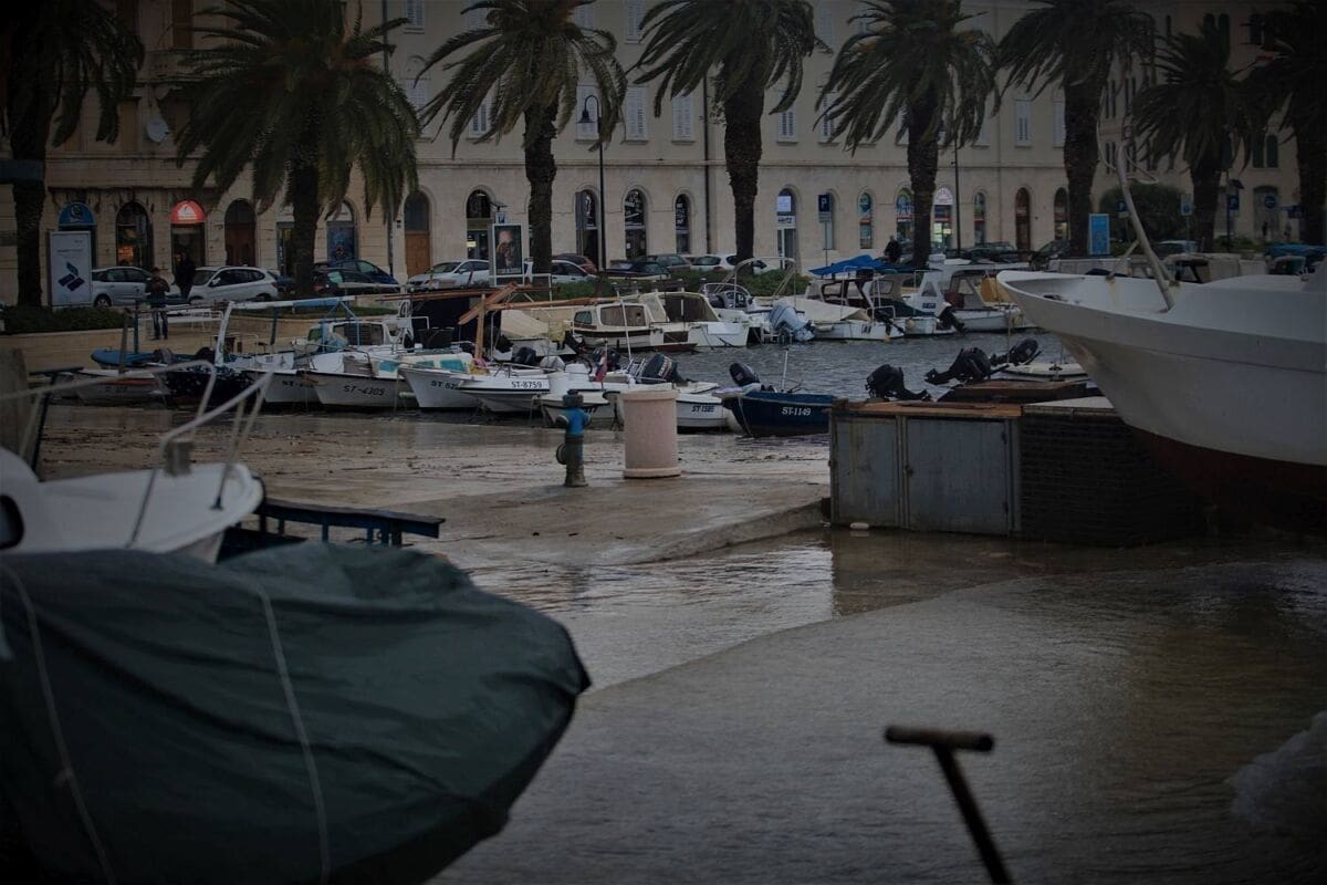 Brojna srušena stabla, nekoliko potopljenih brodica, poplavljeni niži dijelovi rive samo su dio scenarija današnjeg burnog meteorološkoga dana.
