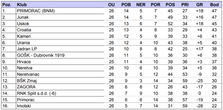 Zagora: Slavica, Vuković (od 74. Ninčević), Pezo, Petranić (od 83. Barada), Slugan, Jurišić (od 65. Knez), Rajčić, Stojak, Ljuba, Bitunjac, Sablić.