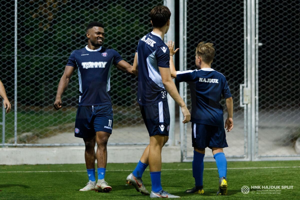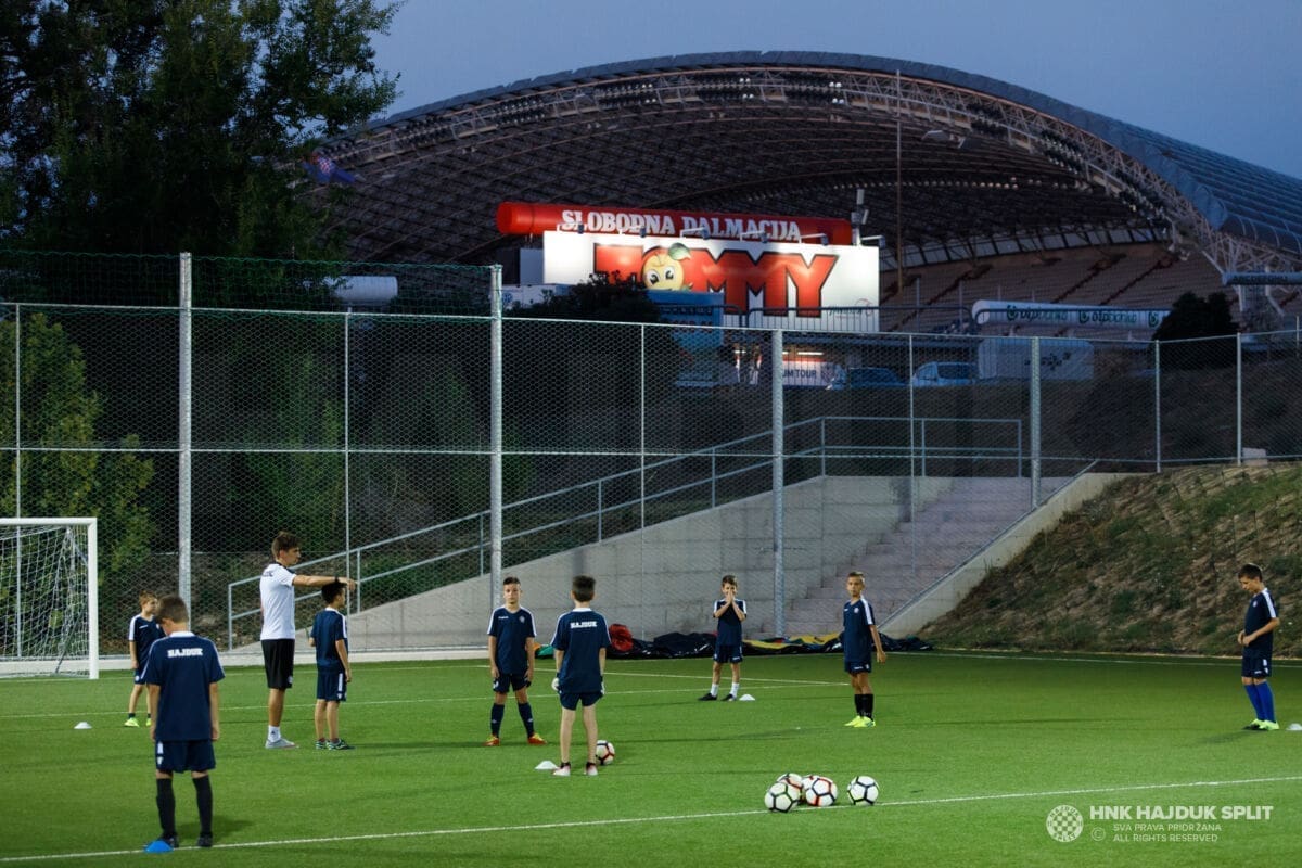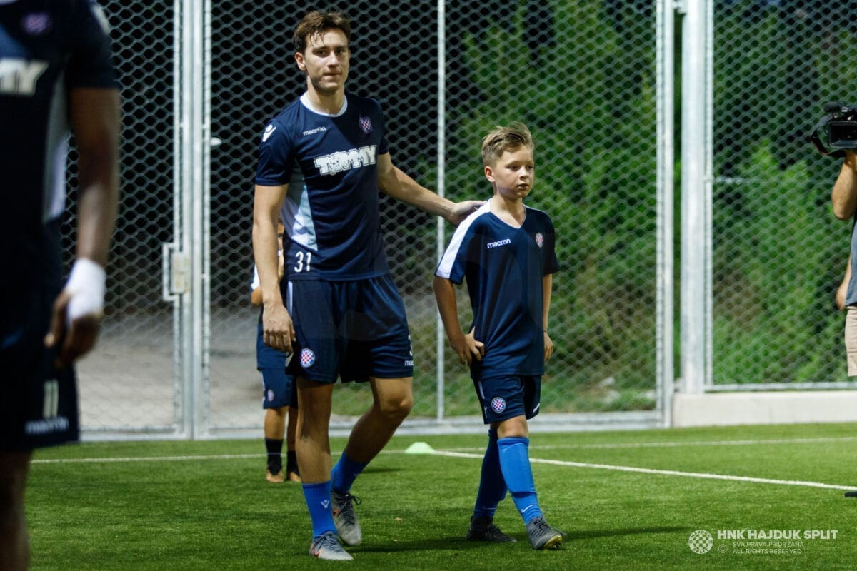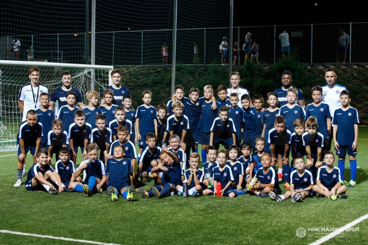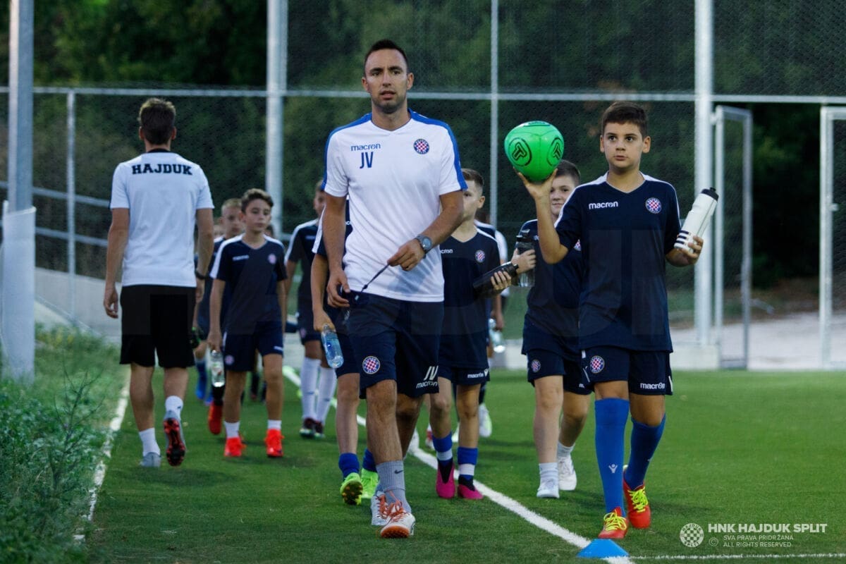 Hajdukovi prvotimci Ivan Dolček i Samuel Eduok predvođeni kapetanom Josipom Juranovićem nakon odrađenog popodnevnog treninga razveselili su svojim posjetom polaznike HNK Hajduk Summer Football School koji se održava na obližnjim terenima Otvorene škole.
