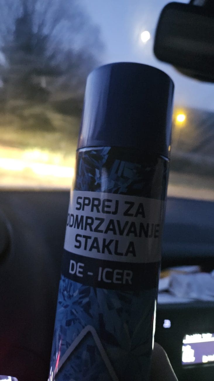 Zbog niskih temperatura, vozači su morali koristiti sredstva za odmrzavanje stakla kako bi očistili vjetrobransko staklo prije polaska,
