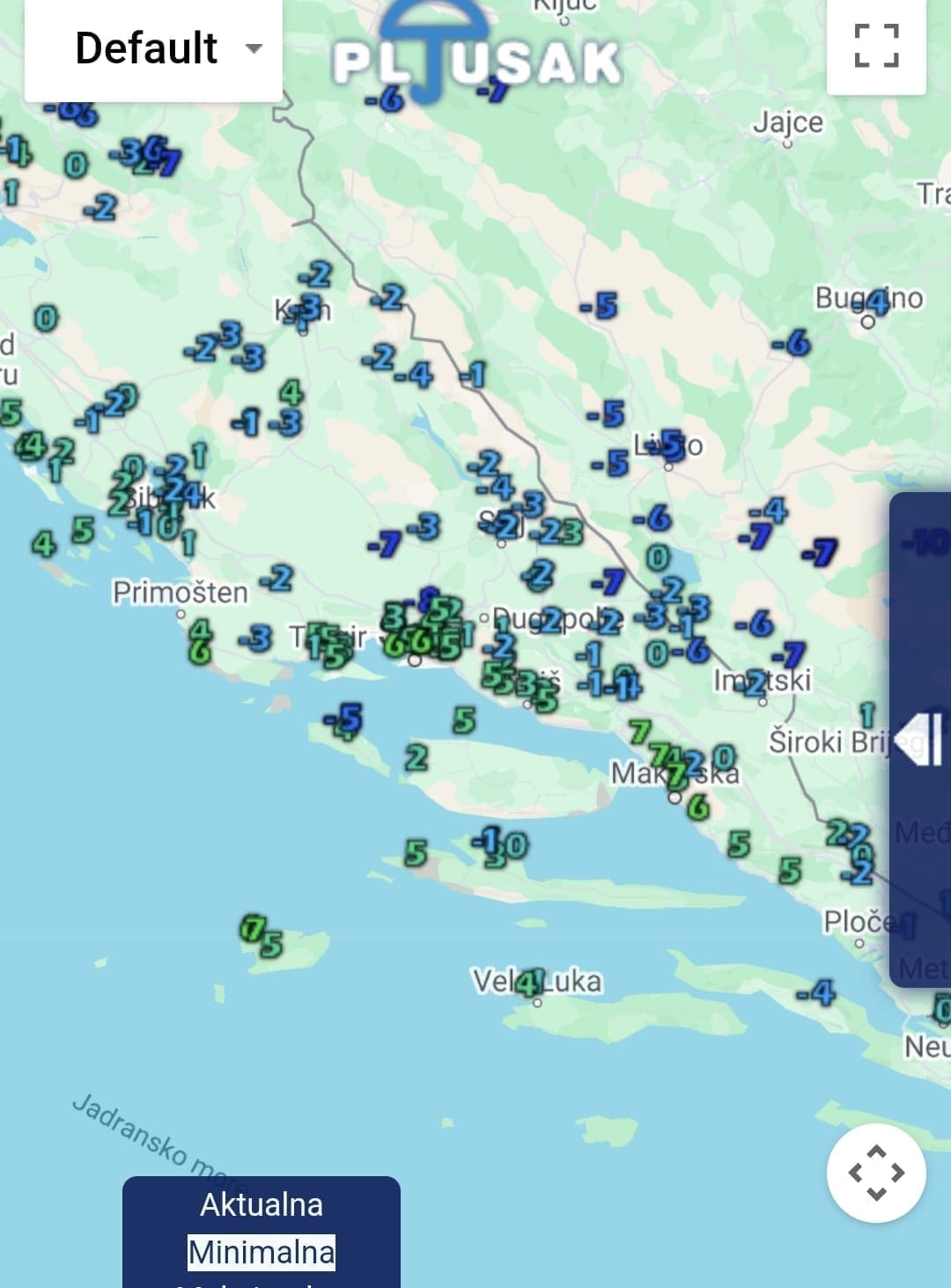 Dugopolje se 'probudilo' na -2°C, Imotski na 0°C, Drniš na -3°C.