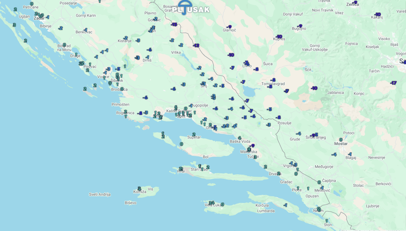 No slabog mraza bilo je uz obalu i ponegdje na otocima. Solin je jutros mjerio 0°C, Split i Kaštela +1, što je jedna od najnižih temperatura uopće izmjerneih ove godine.