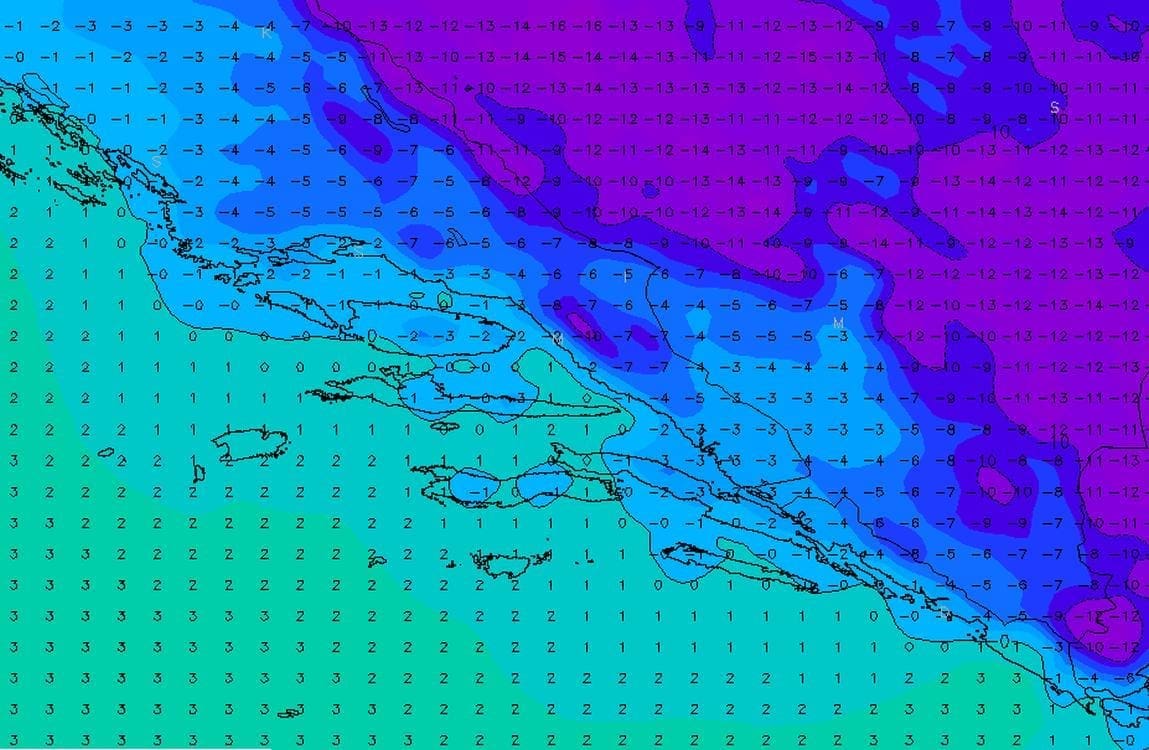 Čak i sredinom dana temperature su u Zagori su oko 0°C ili malo niže, a uz obalu i na otocima tek nekoliko stupnjeva iznad nule. Niske temperature zadržat će se i idućih dana pa će nadolazeća noć i jutro u dijelovima Dalmacije biti još malo hladnija nego prethodna. Danju će za vikend tek malo zatopliti, ali se već u noći na ponedjeljak očekuje novo zahlađenje s mrazom. Sredinom tjedna u dijelovima Dalmacije bit će i obilnijeg snijega!