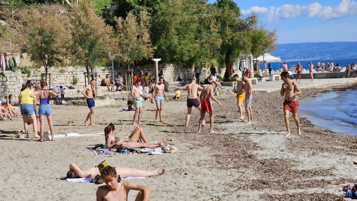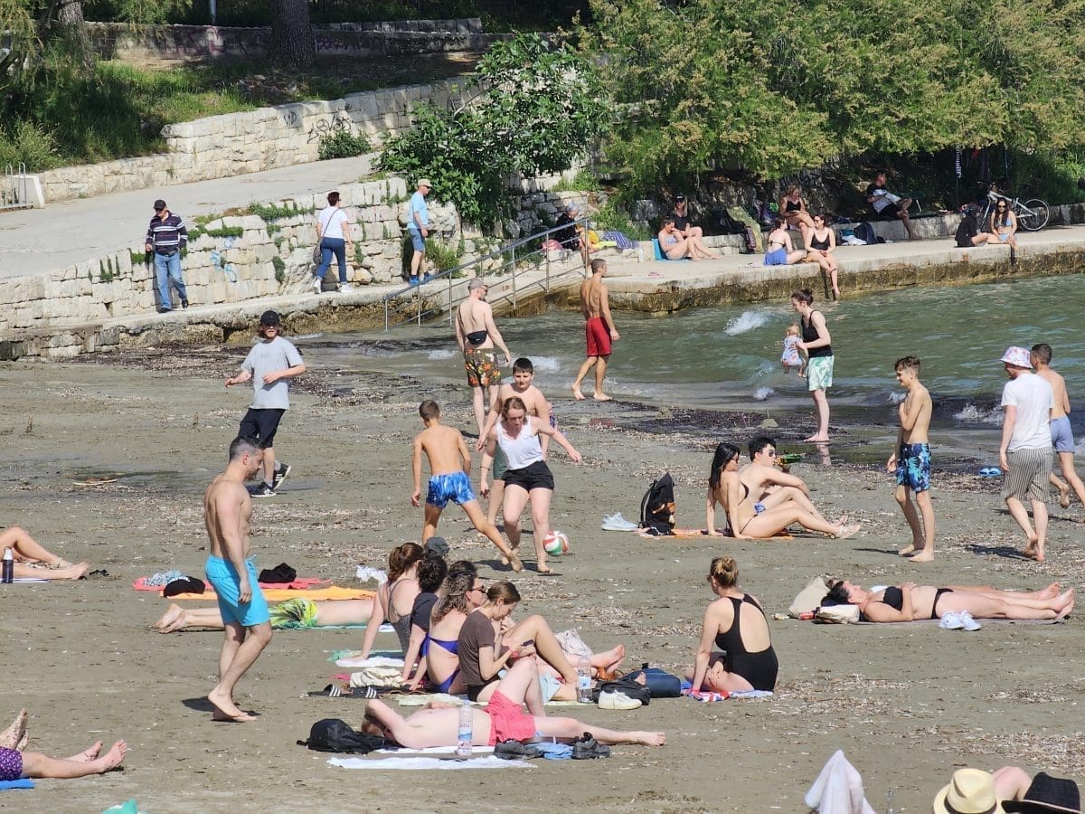 A njezine riječi točan su opis prizora s plaže. Mnogobrojni domaći, ali i turisti koji su udarili brigu na vesele i zaigrali picigin ili se pak malo bućkali i sunčali.
