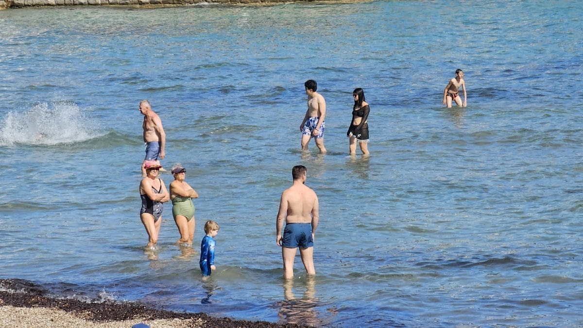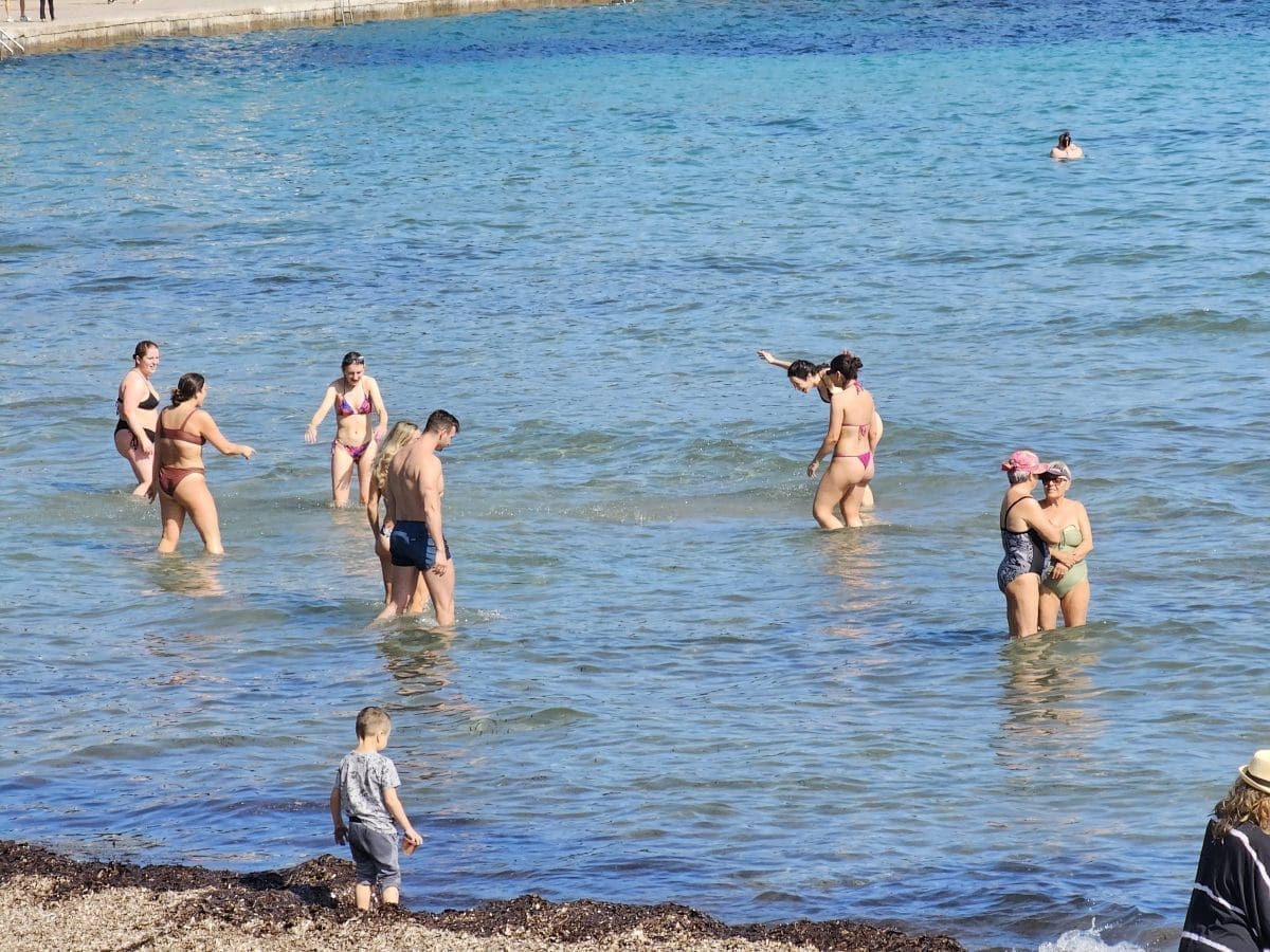Ma kakvo proljeće! Na najpoznatijoj splitskoj plaži danas je 'ka u srid lita'. Kazuje nam to jedna gospođa koja se uputila preko Bačvica do Ovčica u šetnju.